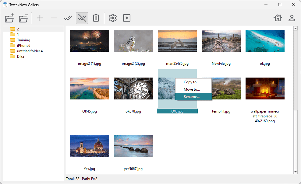 TweakNow Gallery — программа для просмотра, базового редактирования и организации локальных коллекций фотографий. Предлагает интуитивно понятный интерфейс, который не требует специальной подготовки и позволяет быстро ориентироваться в функционале. Редактор оснащен базовыми инструментами редактирования изображений: поворачивание и обрезка фотографии, корректировка яркости, контраста, гаммы и применение простых цветовых фильтров.