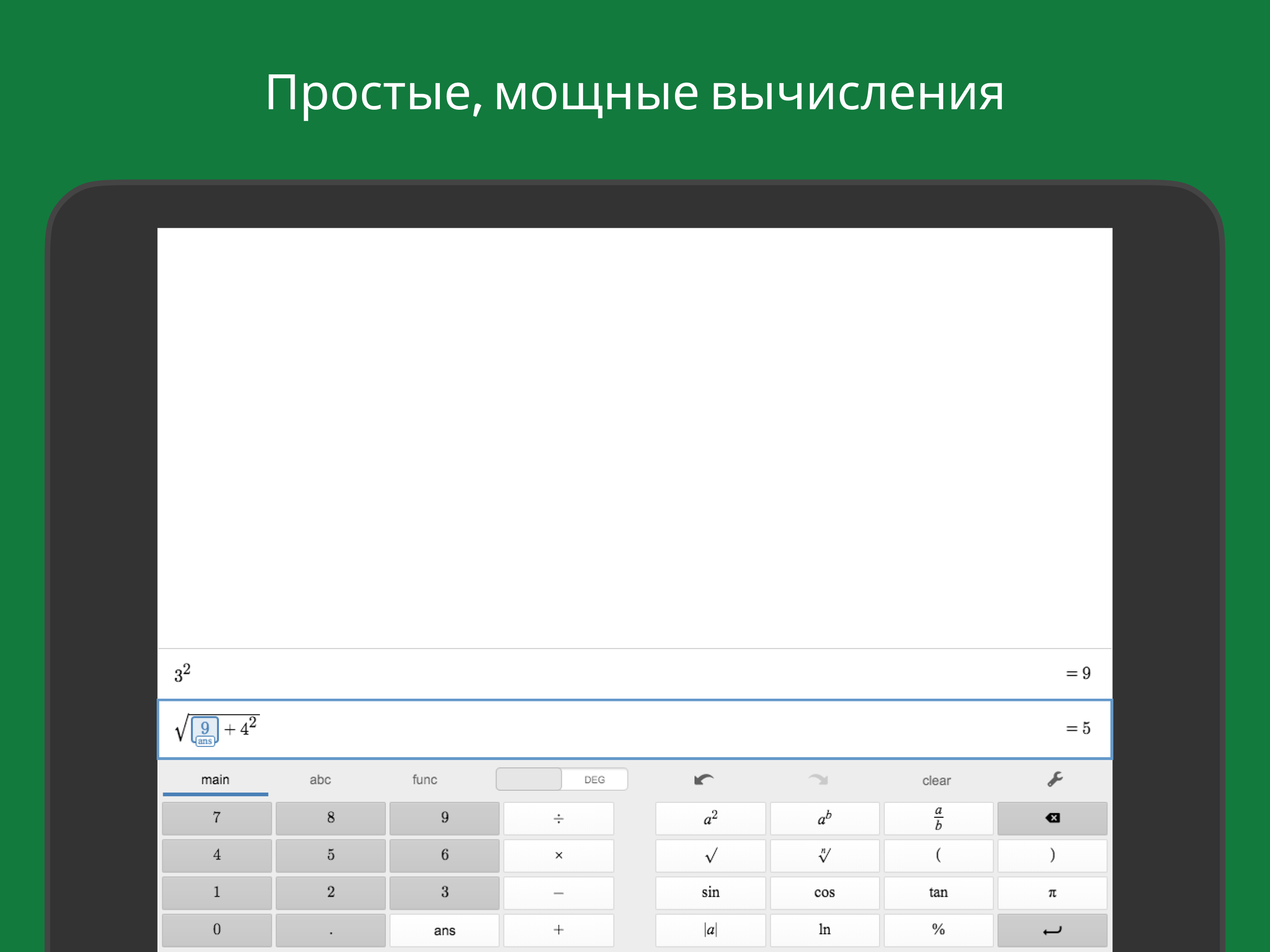 Программа с интуитивно понятным интерфейсом и возможностью просмотривать все предыдущие вычисления, работает в автономном режиме без доступа к интернету, оснащена дополнительными функциями для пользователей с нарушениями зрения через экранные дикторы и дисплеи Брайля.