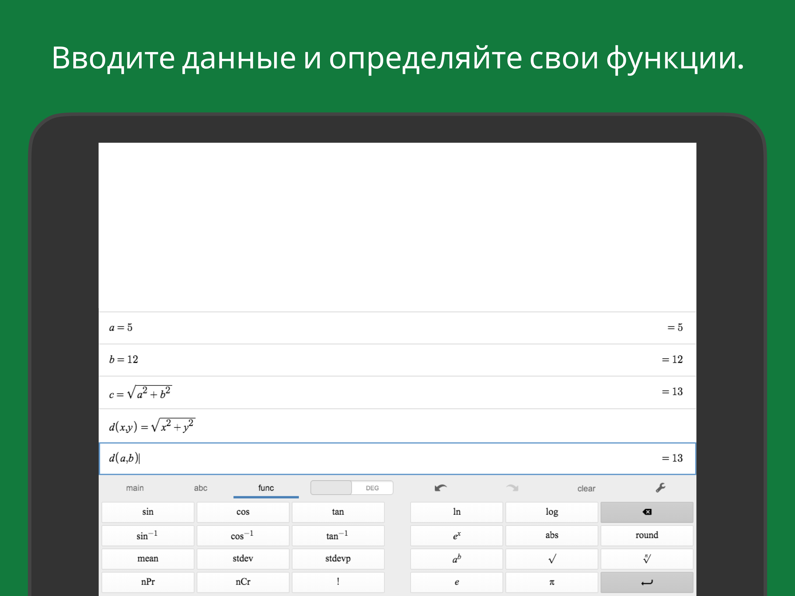 - Ввод пользовательских функций и их использование в дальнейших вычислениях.
