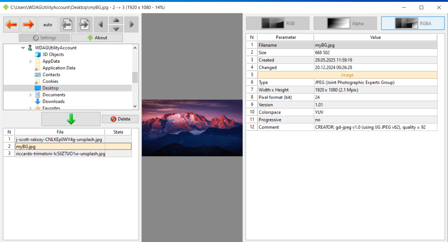 При необходимости можно просмотреть метаданные изображений и переключаться между различными каналами отображения (RGB, RGBA, Alpha). Однако следует отметить, что редактирование метаданных в ImvI Lite не предусмотрено. Приложение без сложных настроек, что позволяет пользователям быстро его освоить.