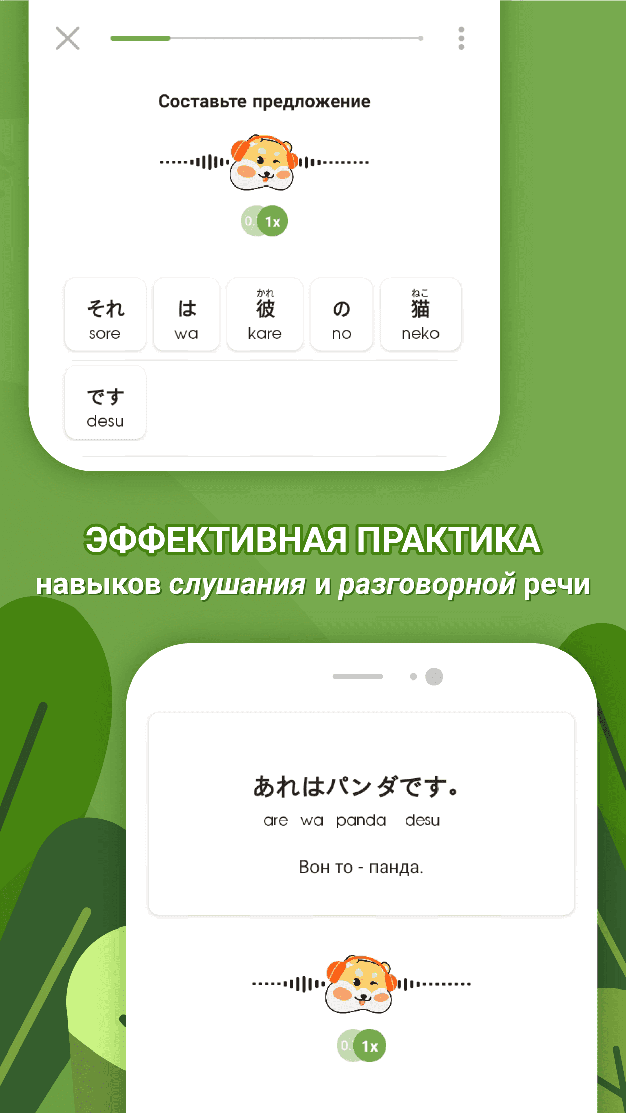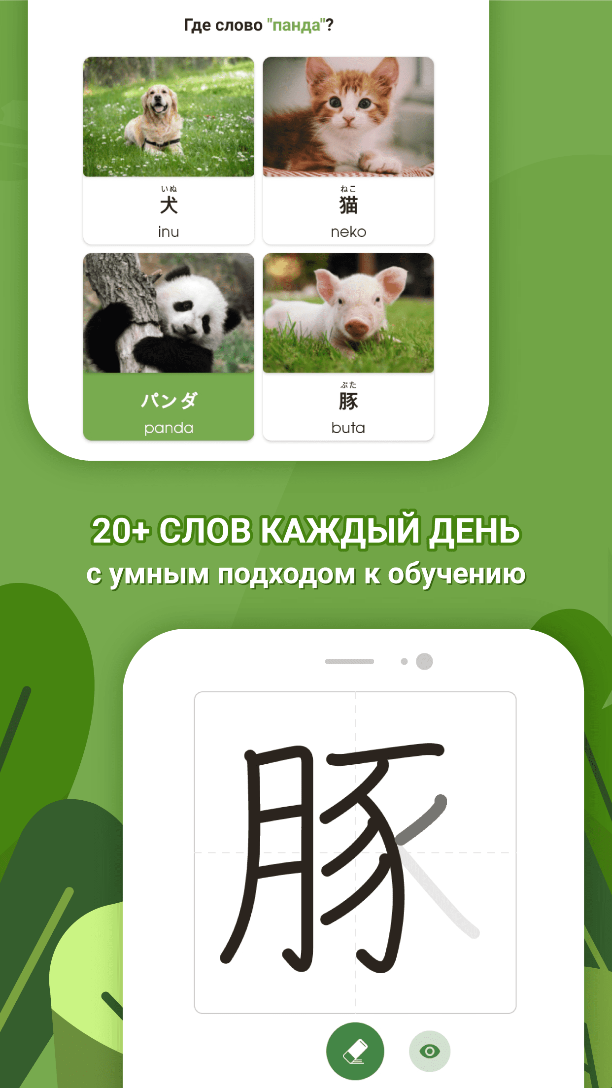 - Помогает изучить японские алфавиты (хирагана, катакана, кандзи).