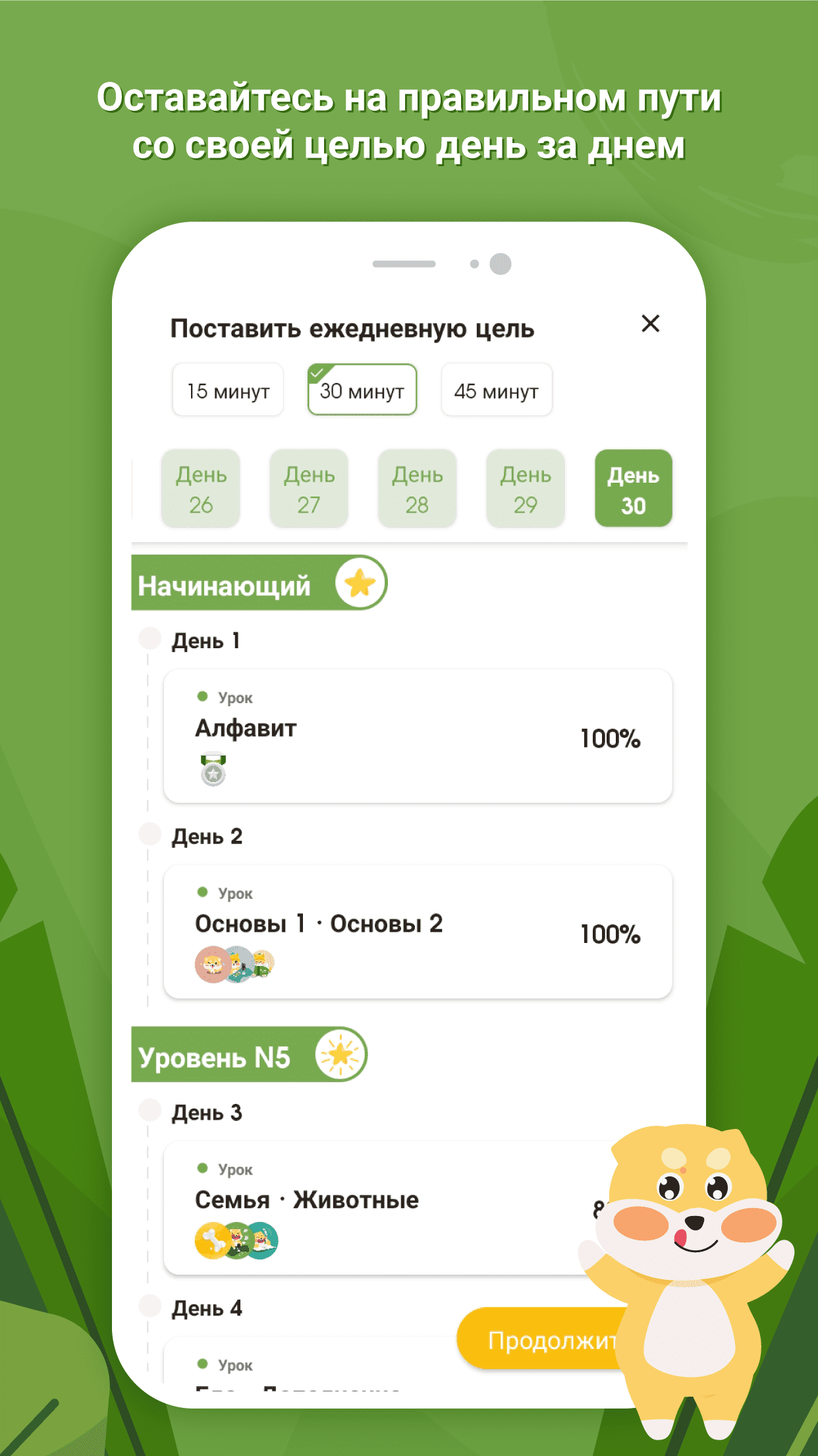 Обучение стороится на поэтапном подходе, начинается с базовых элементов, таких как хирагана, катакана и простые слова, и постепенно переходит к более сложным темам: повседневные диалоги, грамматические конструкции и тематические модули. Платформа поддерживает гибкую настройку индивидуального учебного плана, что дает пользователю возможность самостоятельно выбирать интенсивность занятий, согласно с собственным ритмом и целями.