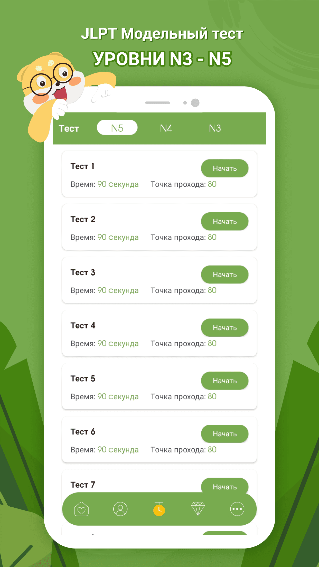 - Предлагает грамматические упражнения на основе JLPT N5, N4 и N3.