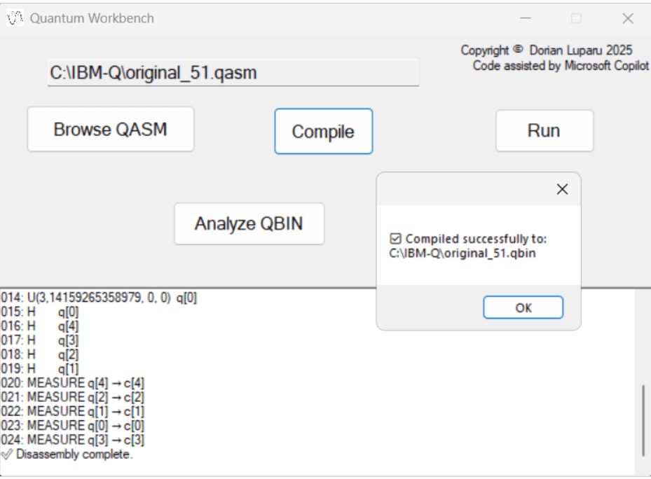 - Компилирует QASM-файлы в бинарный формат QBIN.