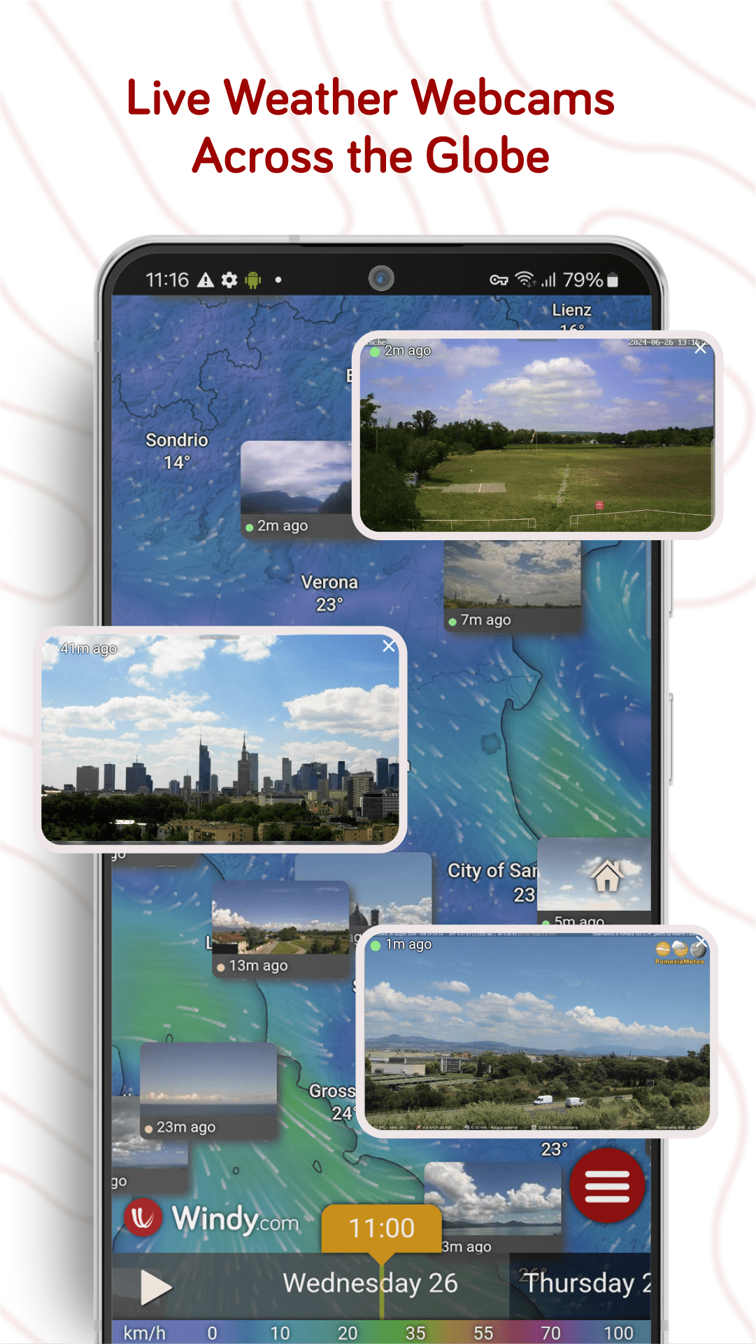 Windy.com — приложение предоставляет доступ к высокоточному метеорологическому прогнозу и визуализации погодных данных в реальном времени. Содержит обширную информацию по ряду параметров: скорость и направление ветра, температура, осадки, атмосферное давление, данные со спутников и радаров, а также специализированные карты для различных сценариев использования.