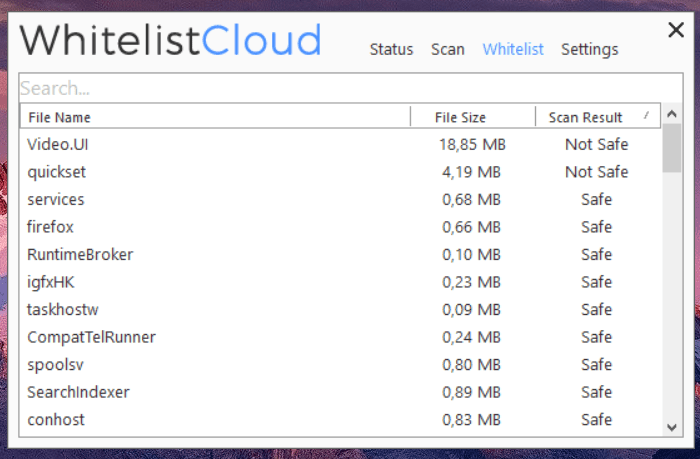 WhitelistCloud — сканер для проверки безопасности файлов и процессов на основе репутационного анализа с использованием облачного белого списка. Программа использует модель доверия: каждый элемент проходит проверку на соответствие заранее определённому списку безопасных объектов, что позволяет сосредоточиться не на распознавании вредоносных признаков, а на подтверждении подлинности и безопасности файлов. Сканер является частью экосистемы разработчика Cyberlock.