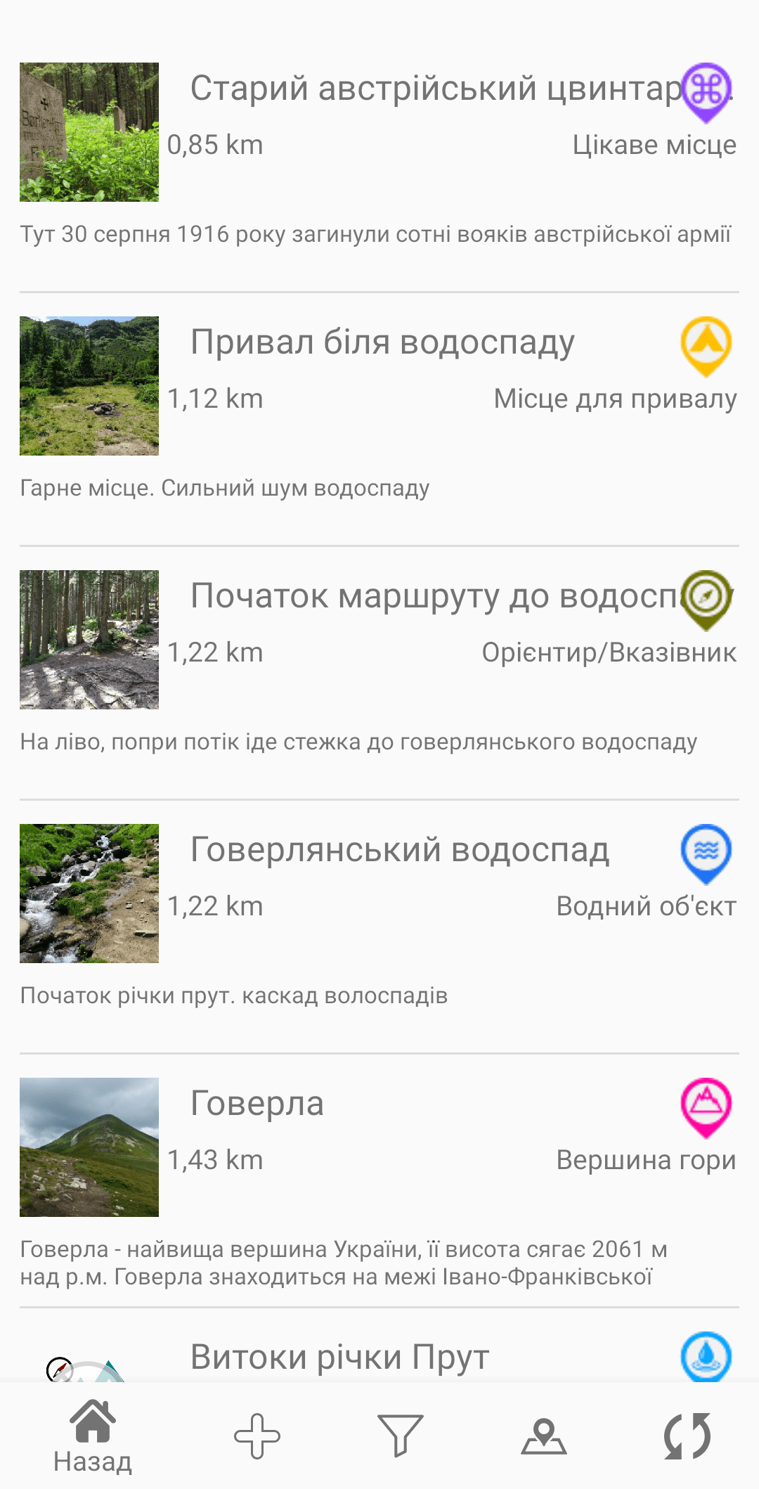 Список основных возможностей Trekking Carpathians: