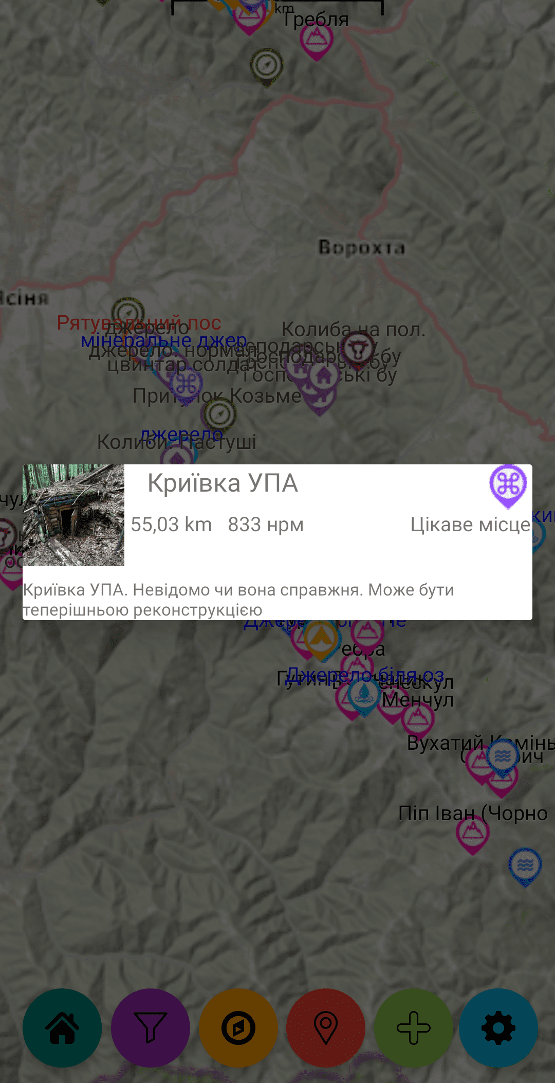 Дает быстрый доступ к информации о хижинах, источниках воды, местах для лагеря.