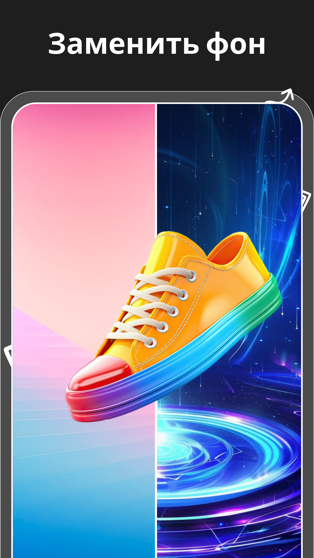 - Позволяет заменять фон на фотографиях с изображениями из галереи или собственных файлов.