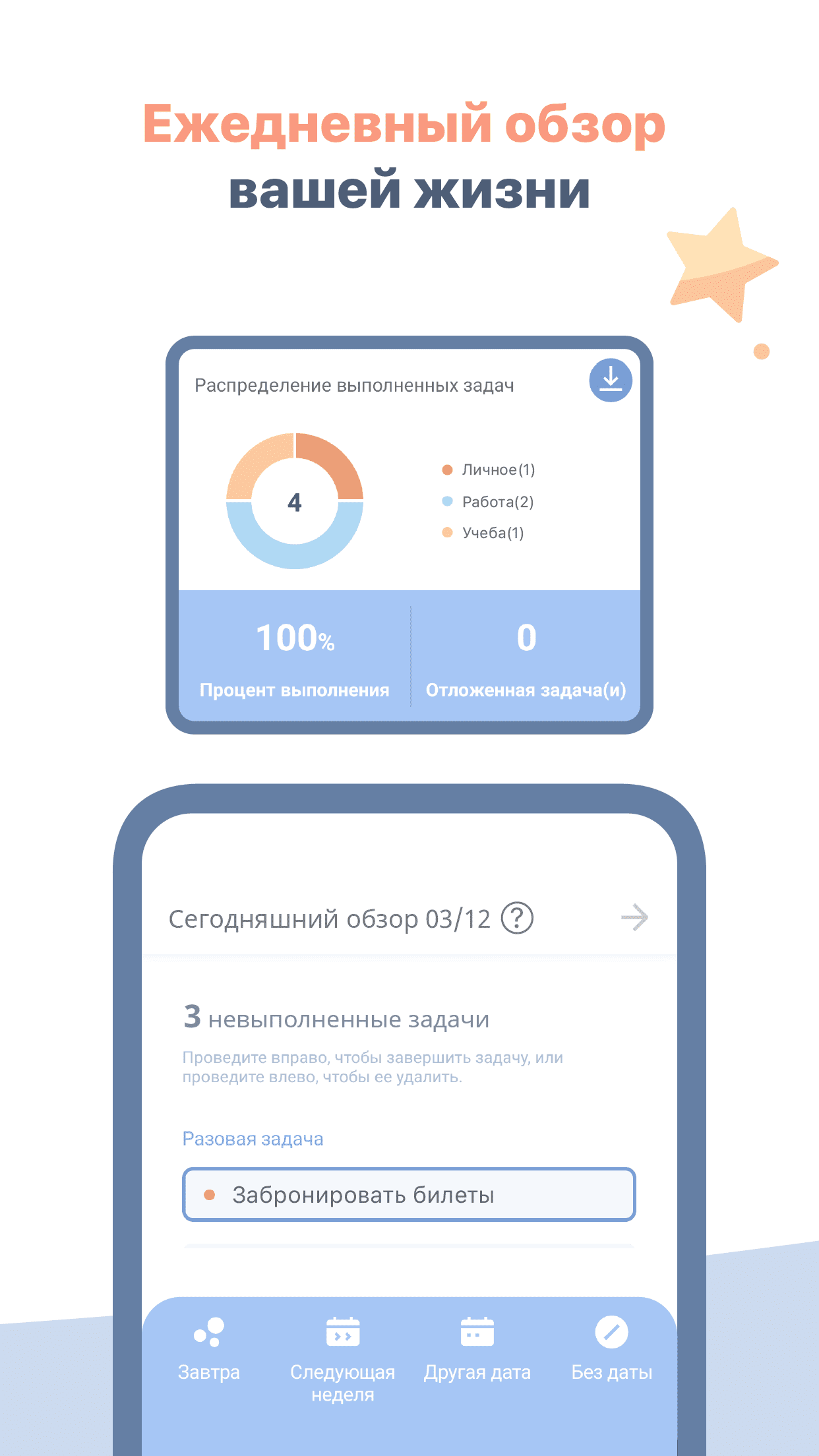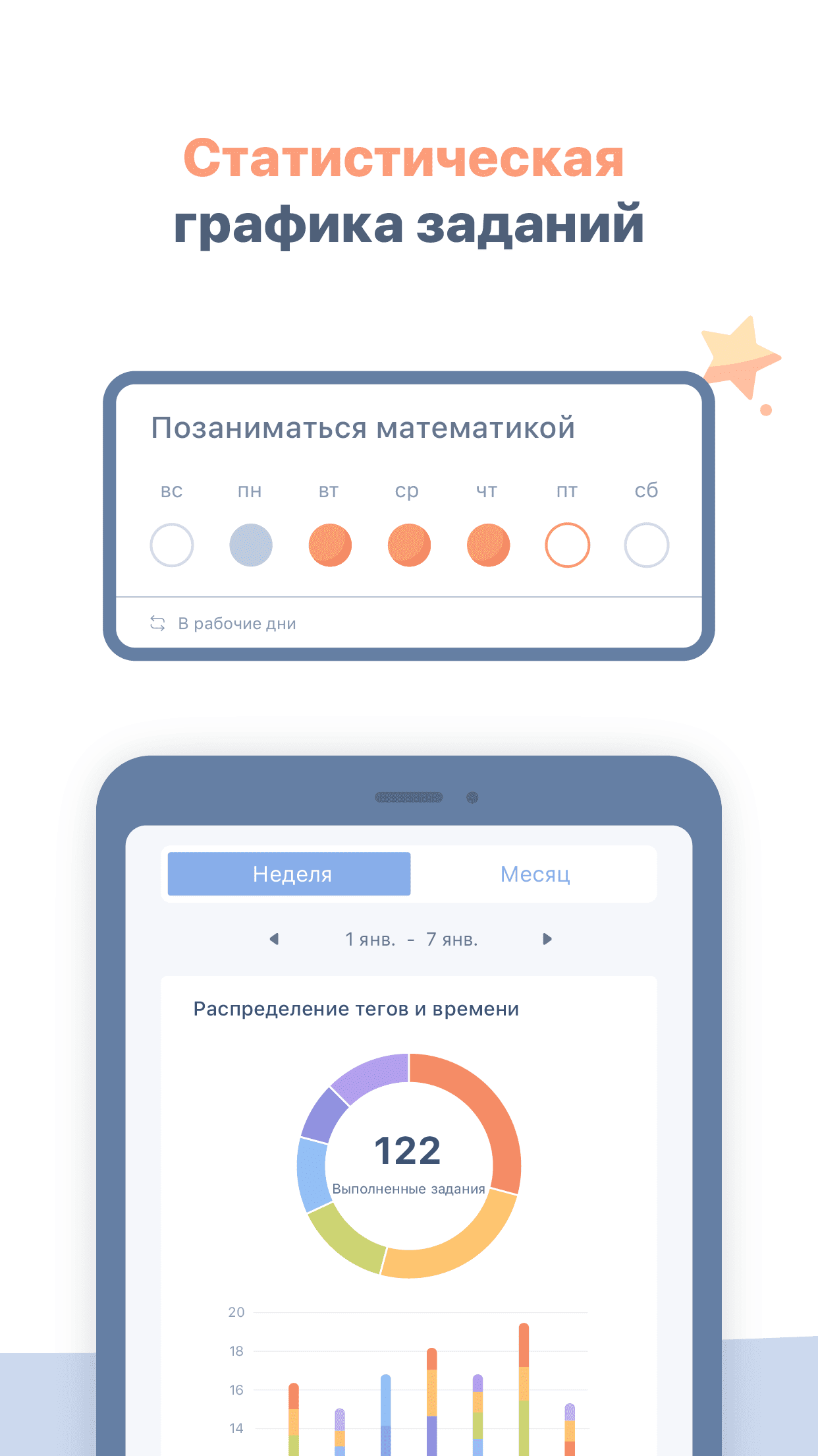 - Предоставляет обзор ежедневных дел и отслеживание прогресса.