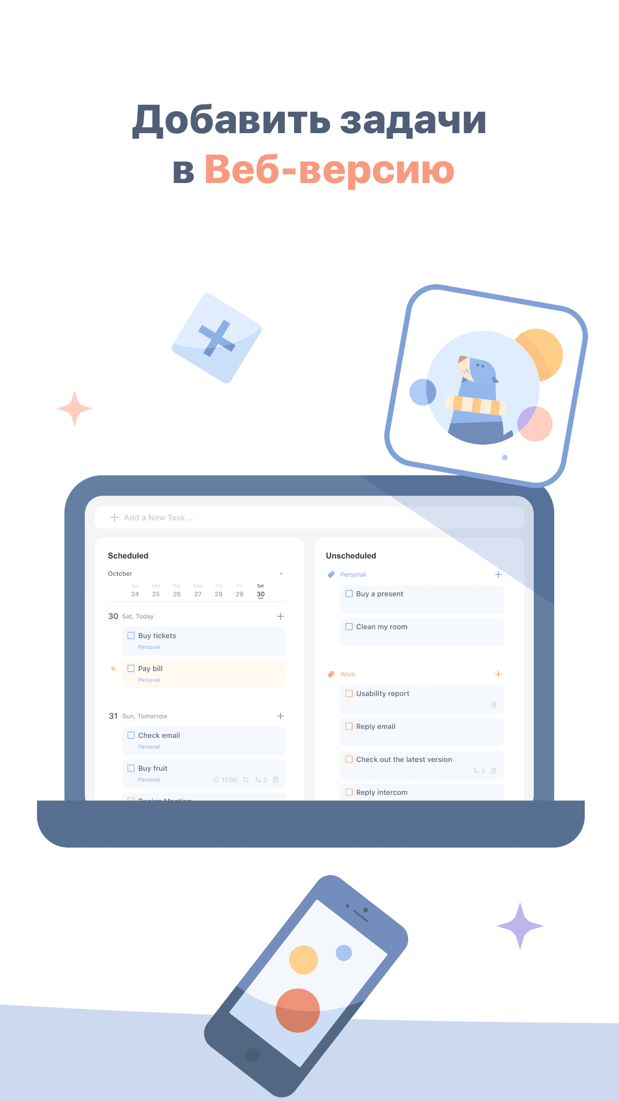 Бесплатное приложение для управления задачами и ведения списка дел. Присутствует...