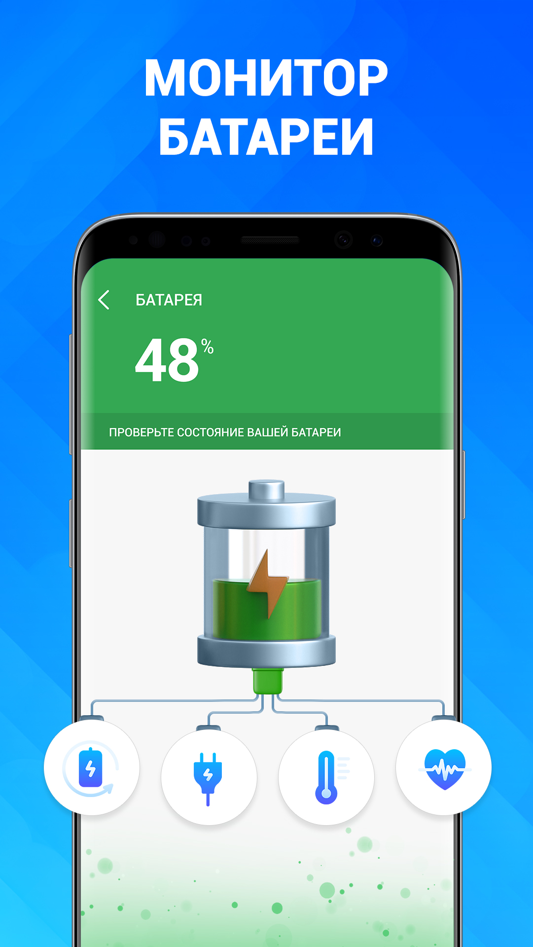 Приложение также позволяет управлять приложениями и контролировать состояние батареи: уровень заряда, температуру и другие параметры в режиме реального времени. Подходит для регулярного использования, помогает поддерживать стабильную работу системы и предотвращает переполнение памяти ненужными файлами.