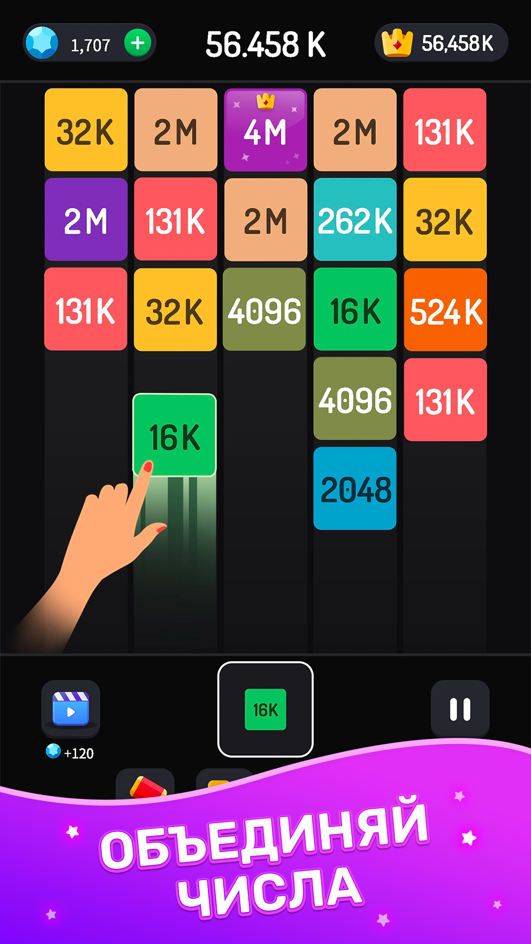 - Объединяет механику «2048» и расширенные возможности объединения блоков.