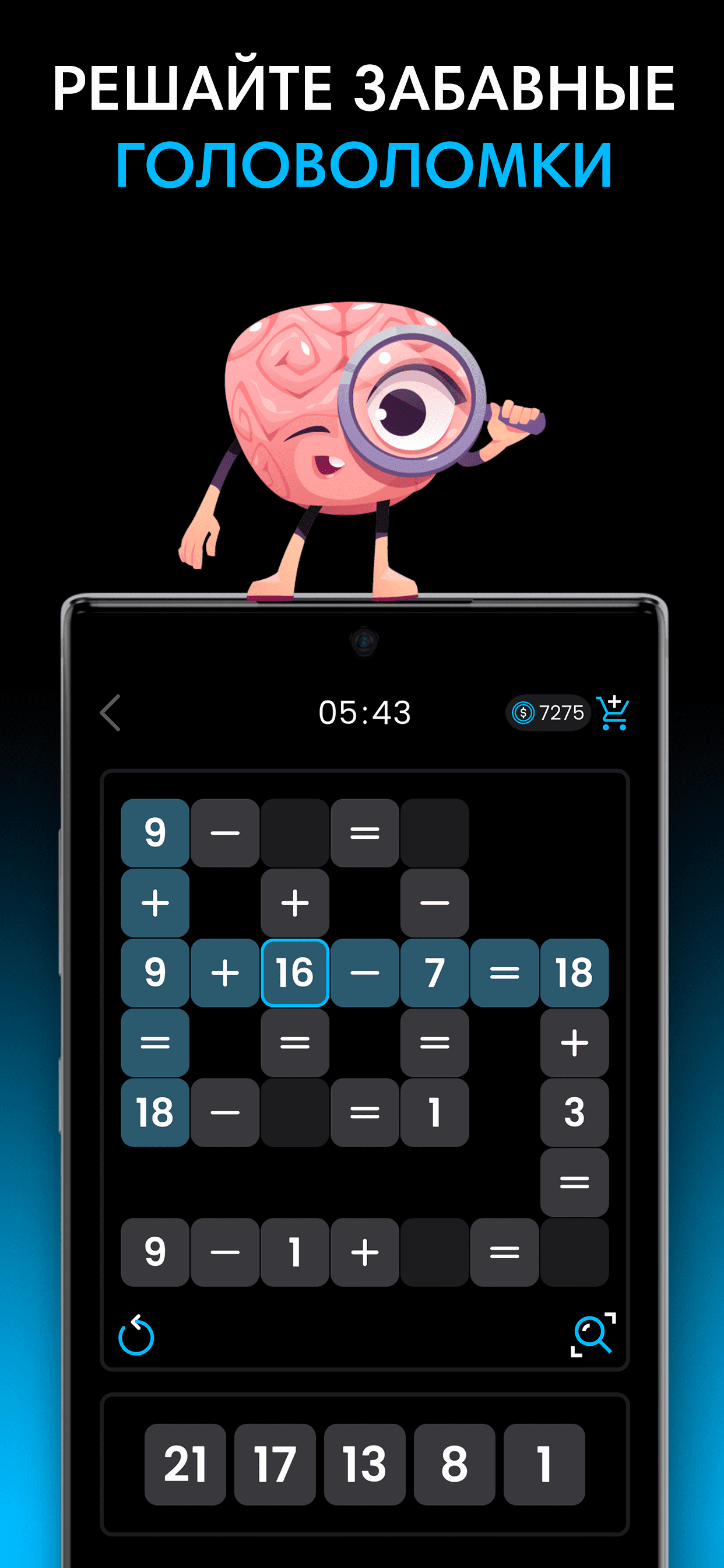 - Предлагает разнообразные математические головоломки для развития памяти и интеллекта.