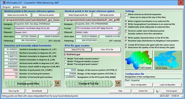 NTv2Creator — специализированная программа для создания файлов NTv2, которые применяются при точном преобразовании координат между различными системами. Позволяет генерировать файлы на основе анализа двух наборов данных с идентичными точками, где один файл выступает в качестве исходной системы координат, а другой — целевой. Обеспечивает высокую точность расчетов и облегчает выполнение задач в области геодезии и картографии. Созданные области NTv2 можно отобразить в Google Earth или сохранить вместе с используемой конфигурацией для дальнейшей работы.