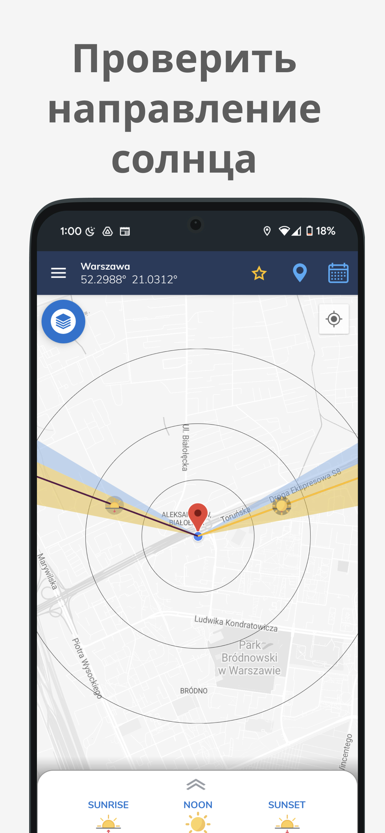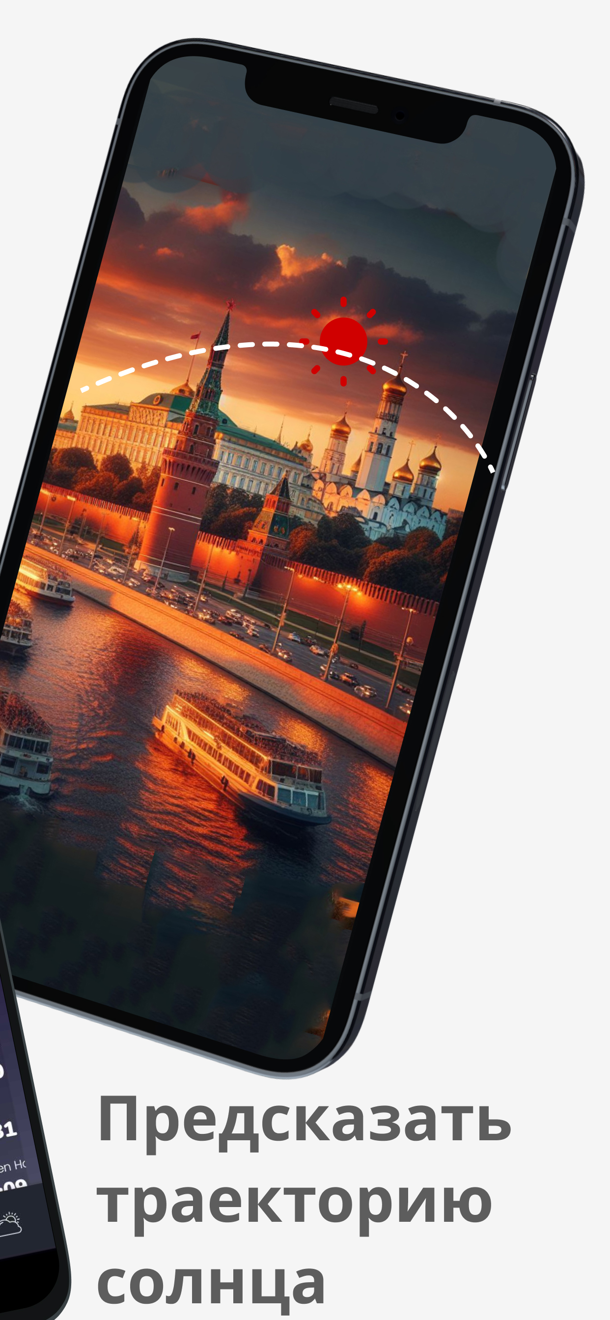 - Визуализирует траекторию солнца в режиме дополненной реальности.
