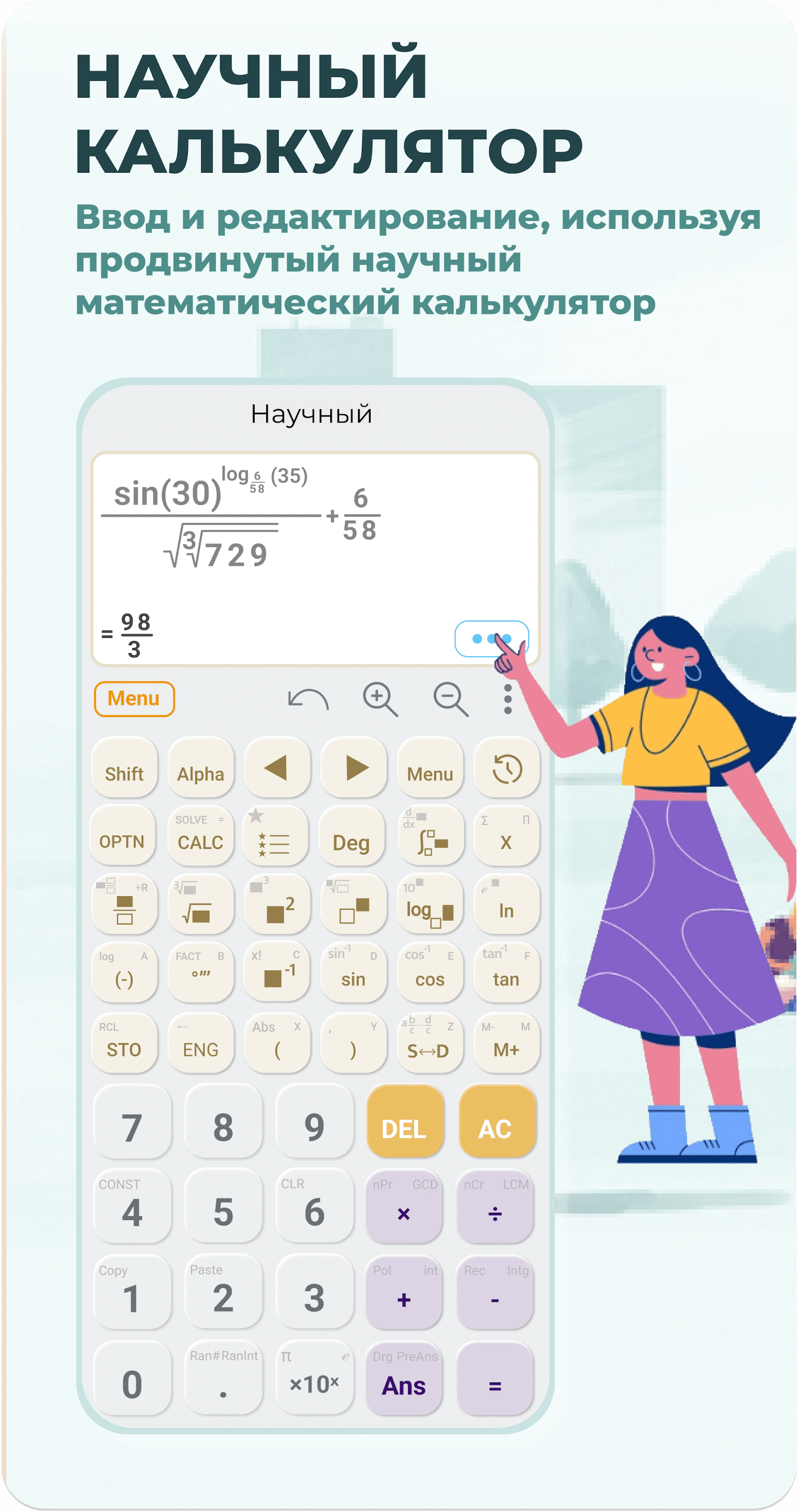 Scientific Calculator He-580 — многофункциональный инструмент для тех, кто работает с математическими расчетами. Приложение поддерживает работу с дробями, процентами, комплексными числами, векторами и матрицами. Встроенные графические инструменты позволяют строить графики функций и анализировать зависимости, что особенно полезно в инженерных расчетах и физике. Также предусмотрена библиотека формул по математике и естественным наукам, что превращает приложение в универсальный справочник.