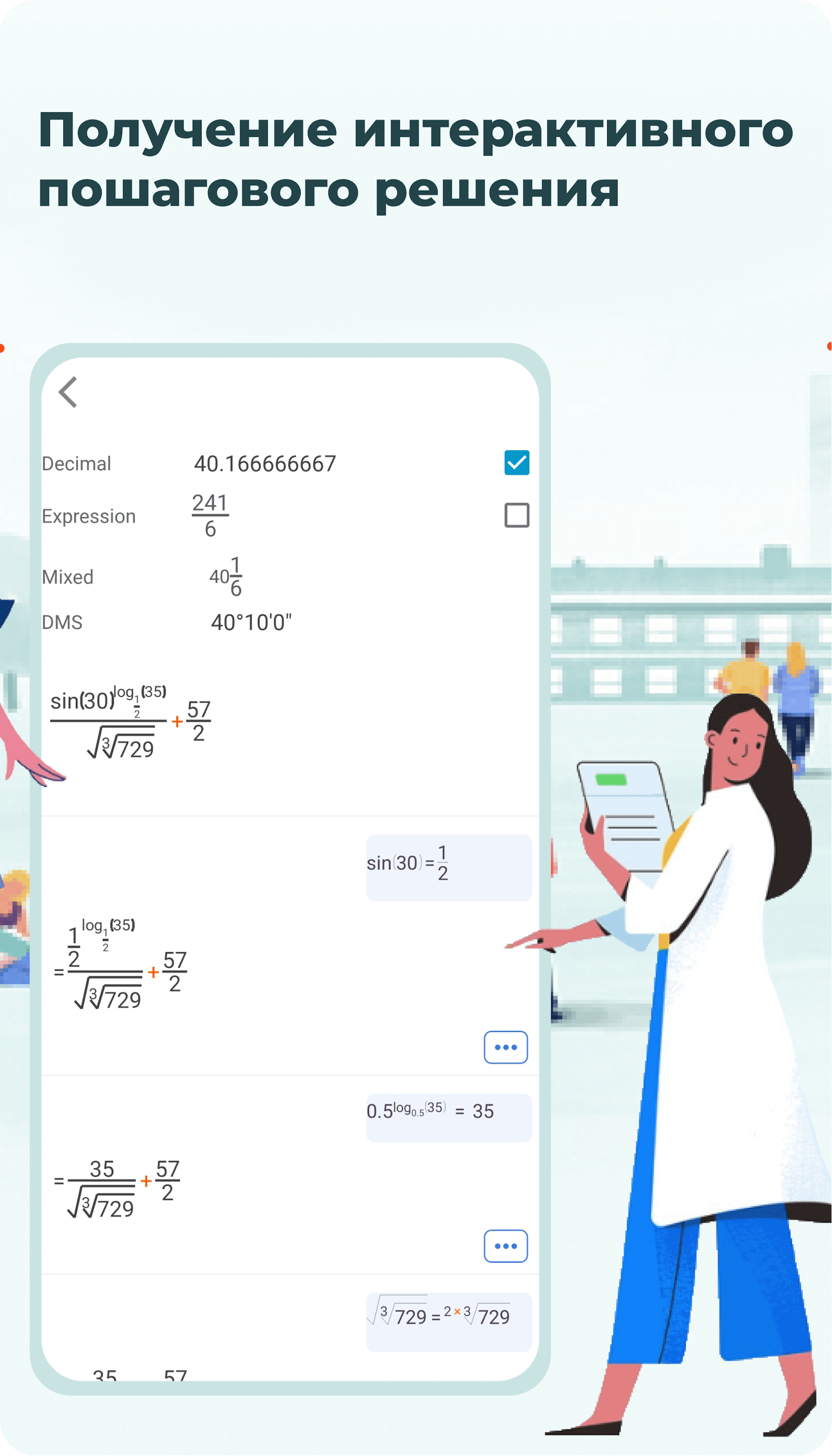 - Поддерживает вычисления с арифметики, работу с дробями, процентами и комплексными числами.