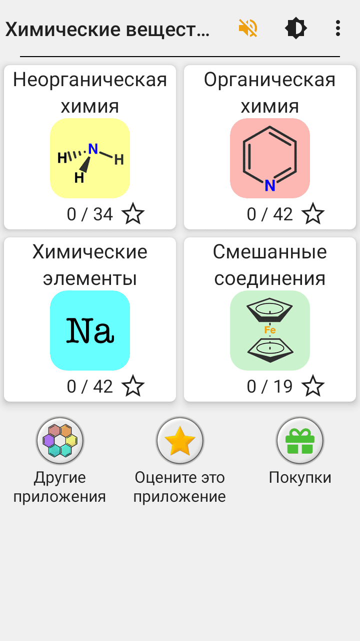 - Предлагает задания по четырем уровням: неорганическая химия, органическая химия, элементы и смешанные соединения.