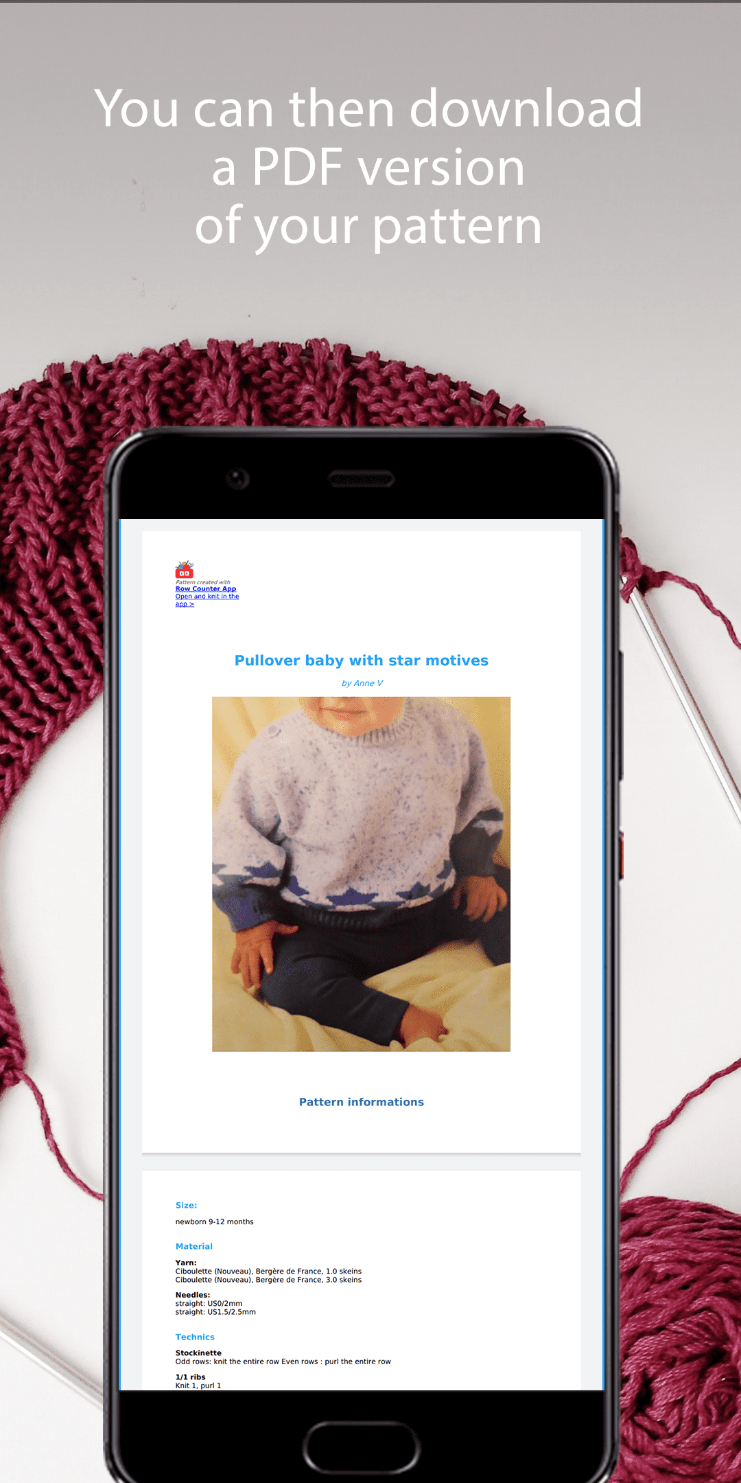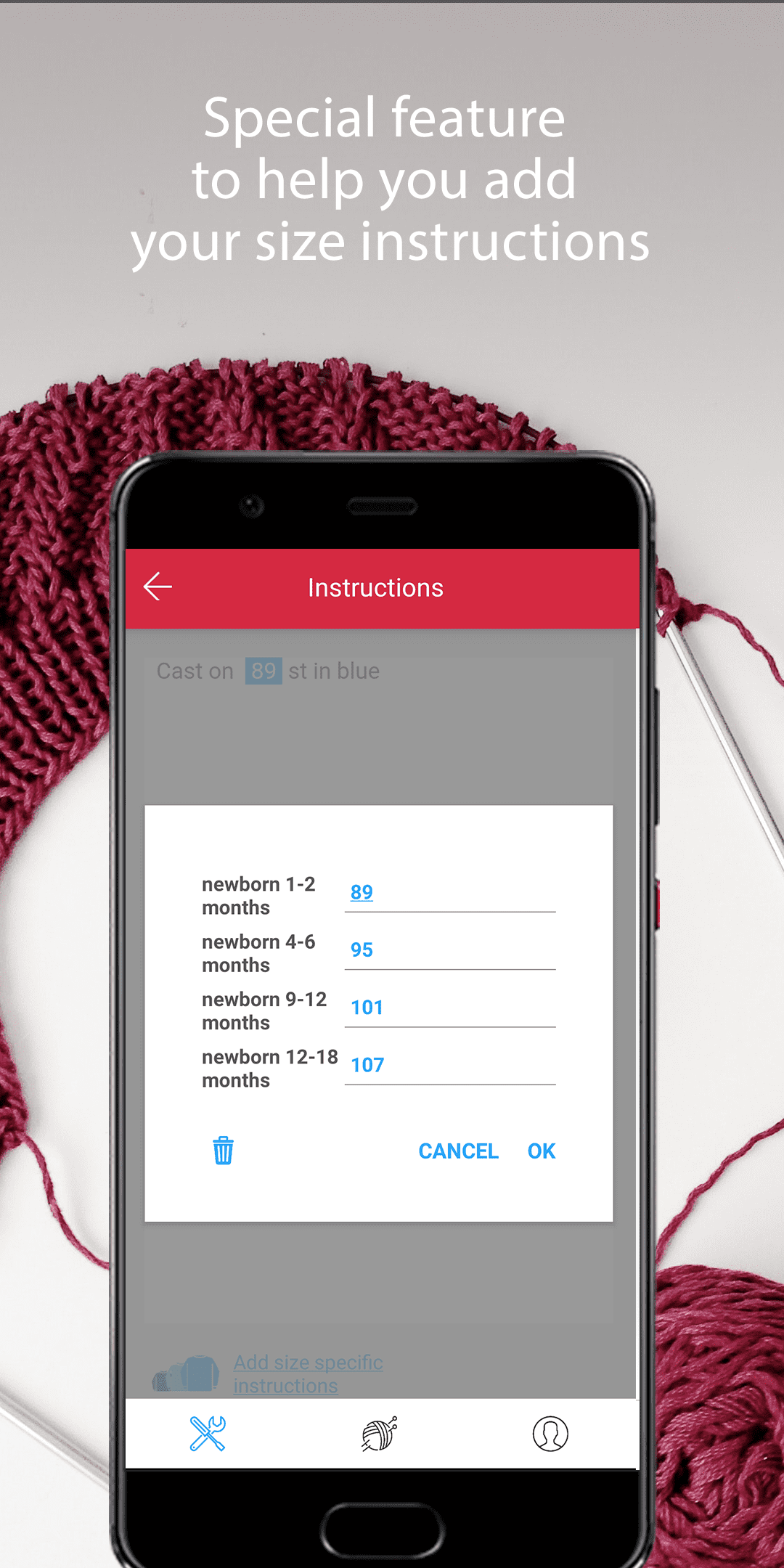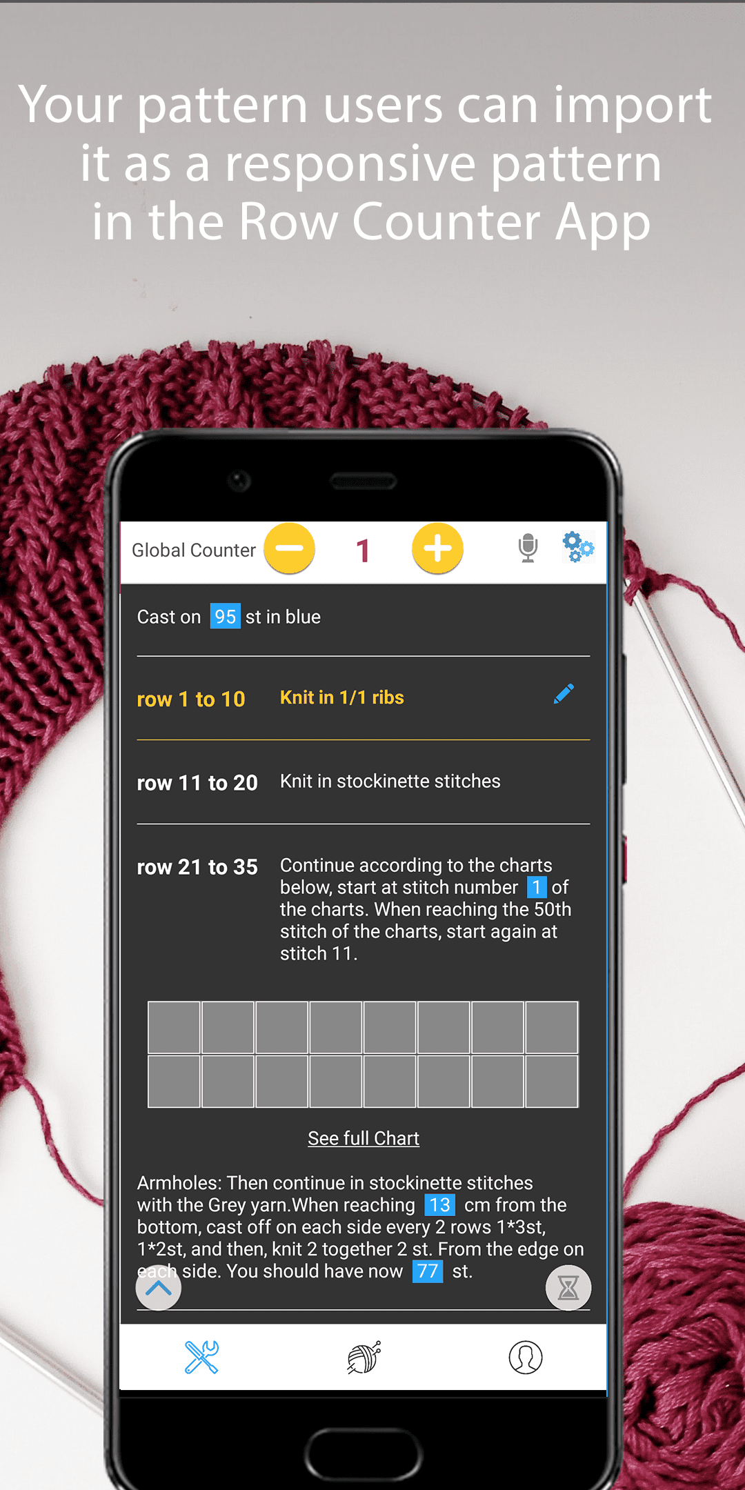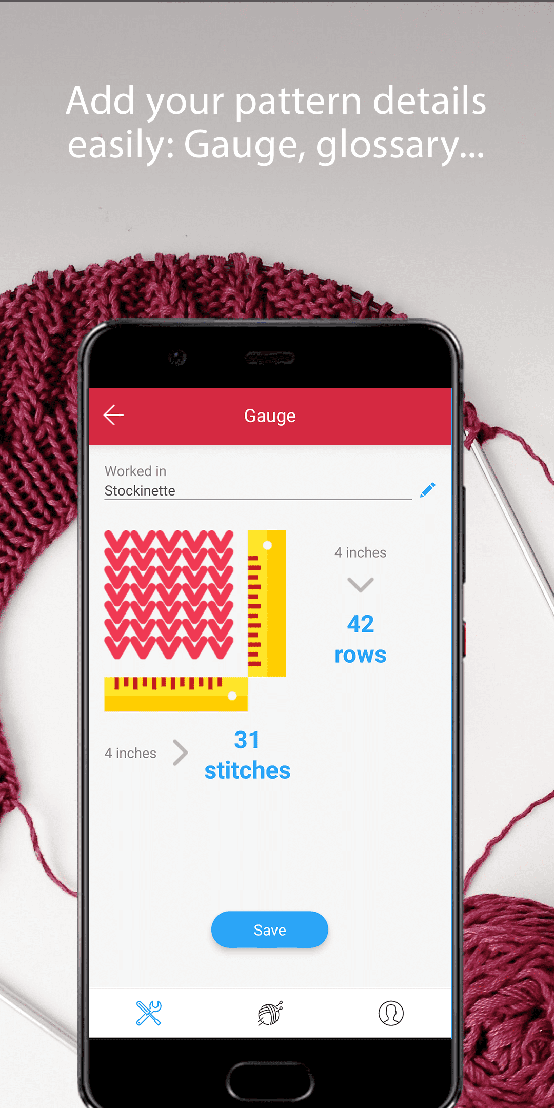 Приложение упрощает подготовкуи выкроек: пользователь может указывать пряжу, инструменты, технические детали, создавать глоссарий и добавлять структурированные описания для каждого проекта. Встроенная система управления размерами дает возможность быстро адаптировать инструкции для разных вариаций изделия. К выкройкам можно прикреплять текст, изображения и видеоматериалы. Если пользователь хочет поделиться схемой с другими пользователями он может указать выбранных пользователей или сделать ее общедоступной. Доступ к готовому проекту предоставляется по уникальной ссылке, при этом друзья или коллеги могут импортировать его в приложение или скачать в формате PDF.