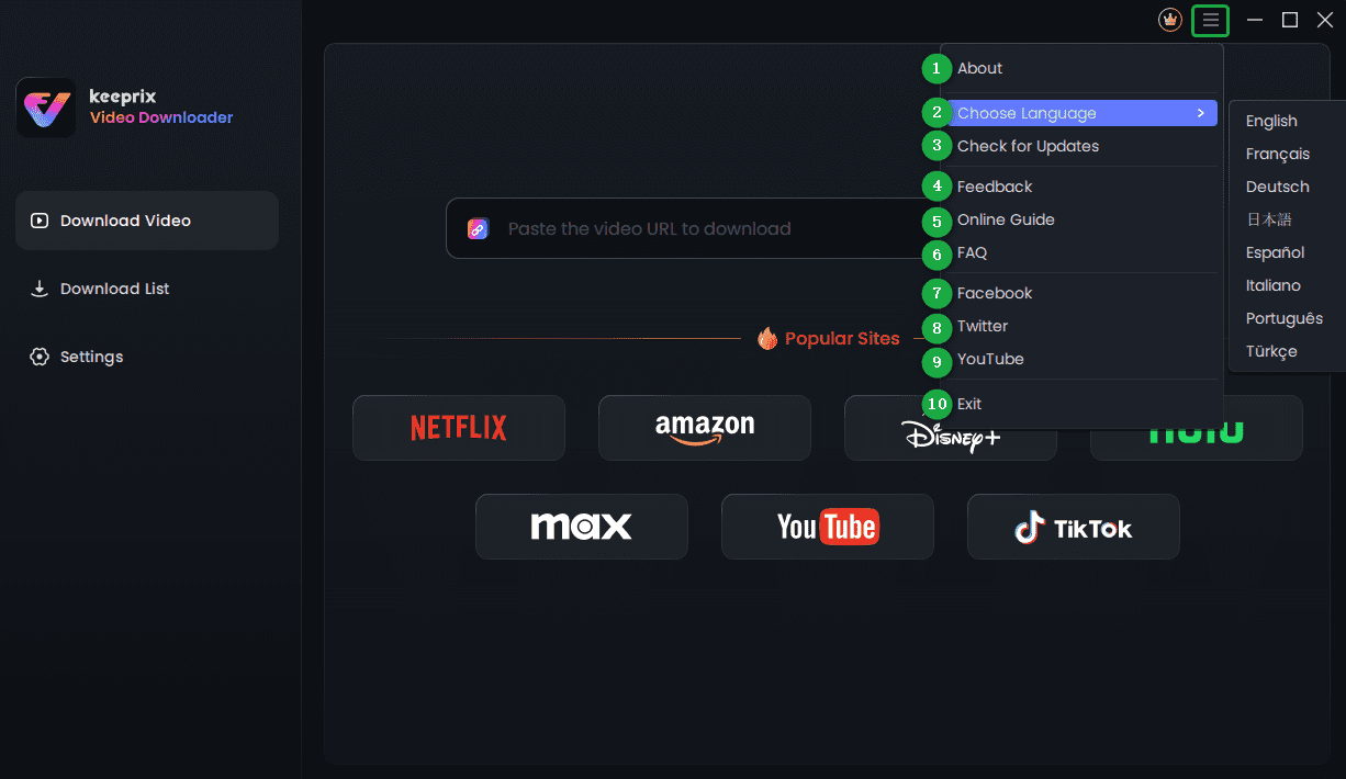 Keeprix — приложение предоставляет удобный способ загрузки видеороликов, фильмов и сериалов в высоком качестве с добавлением аудиодорожек и субтитров с популярных онлайн-платформ, позволяя сохранять материалы для последующего офлайн-просмотра.