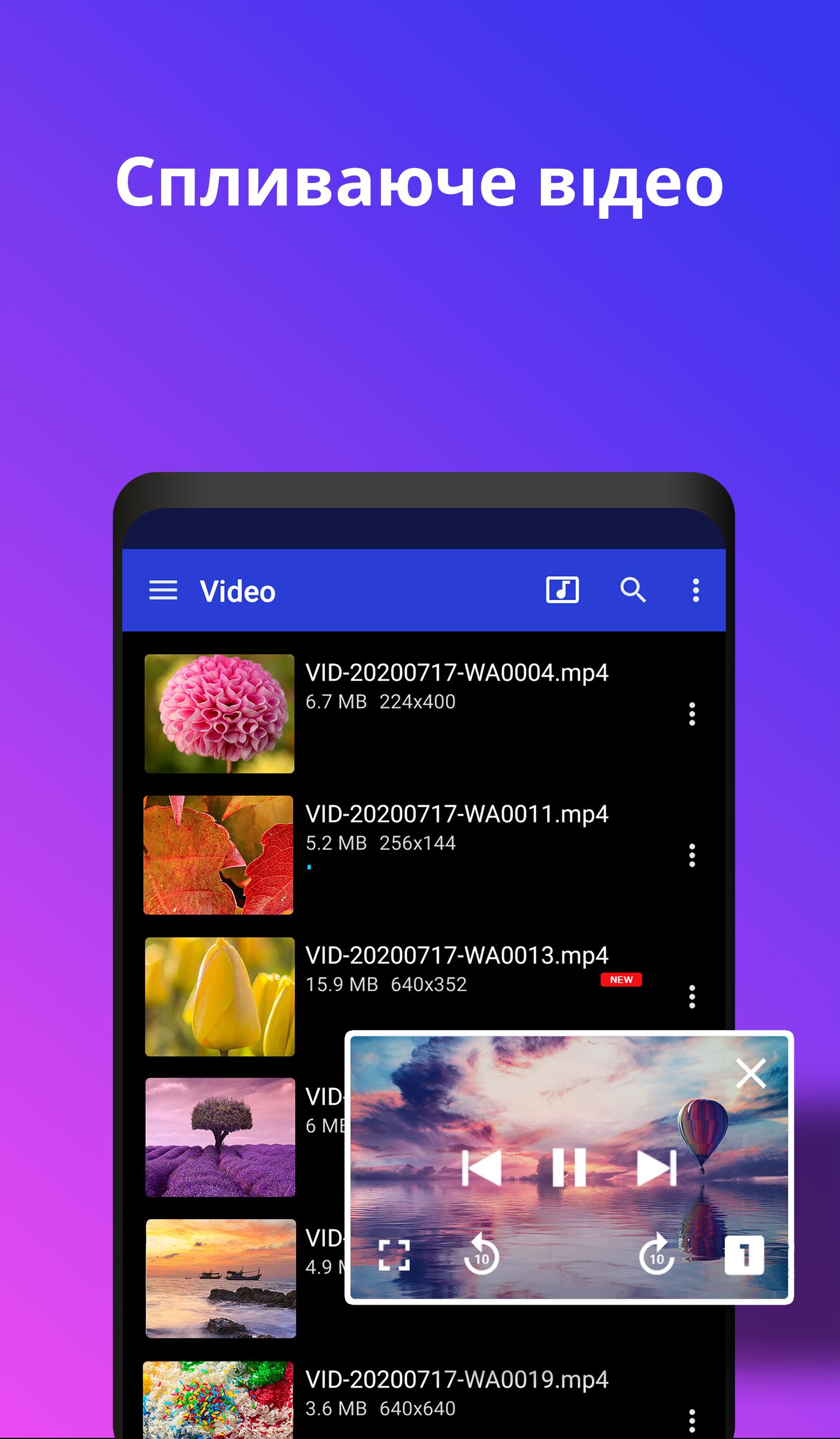 UPlayer — медиаплеер, предназначенный для воспроизведения видеофайлов практически всех популярных форматов, в том числе HD и 4K, обеспечивает удобное управление коллекцией мультимедиа и содержит дополнительные функции для работы с видео и аудио. Помогает оптимизировать память устройства через поиск и удаление дубликатов видео.