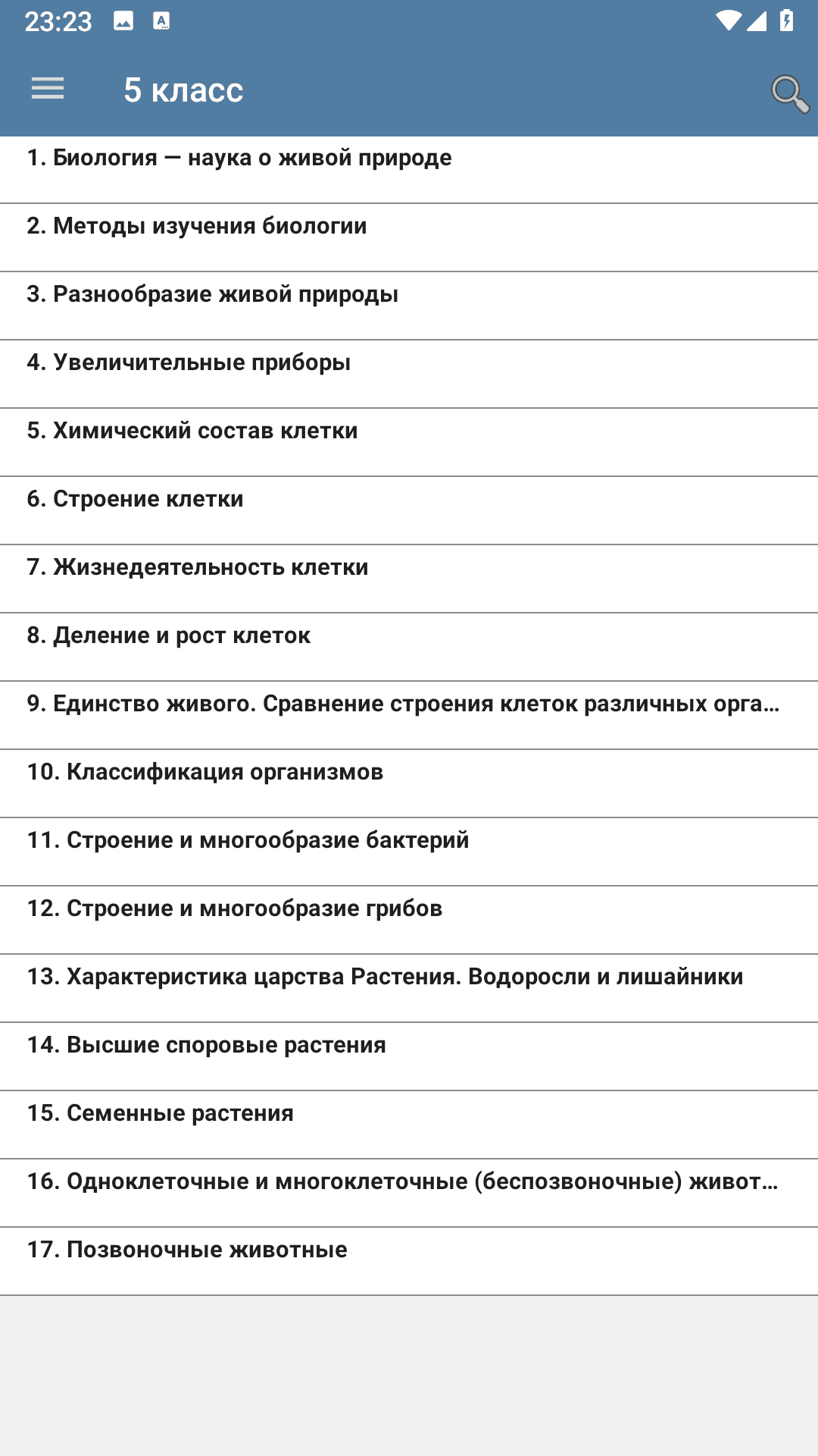 Приложение содержит обучающие материалы по основным разделам школьного курса биологии с 5 по 11 классы: классификация организмов, ботаника, зоология, анатомия человека, цитология, генетика и основы эволюции. Такой подход помогает изучать материал постепенно и последовательно, начиная с базовых понятий и заканчивая более сложными темами старших классов.
