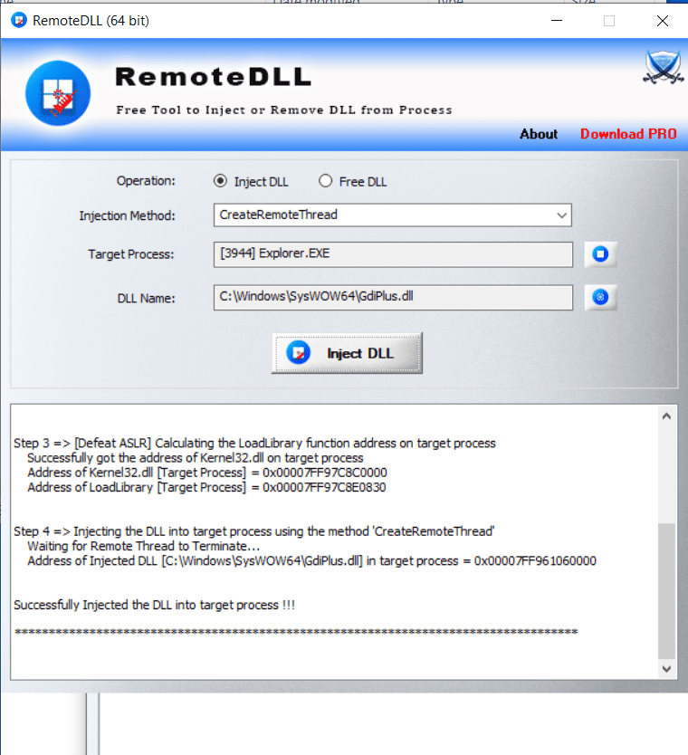 RemoteDLL — компактная утилита для внедрения (injection) и выгрузки (ejection) библиотек DLL в процессы, запущенные в системе Windows. Программа не требует установки, может быть запущена с любого накопителя, в том числе с USB-флешки или внешнего диска. Будет полезна техническим специалистам, системным администраторам и разработчикам, которые проводят отладку, тестирование или анализ поведения приложений.
