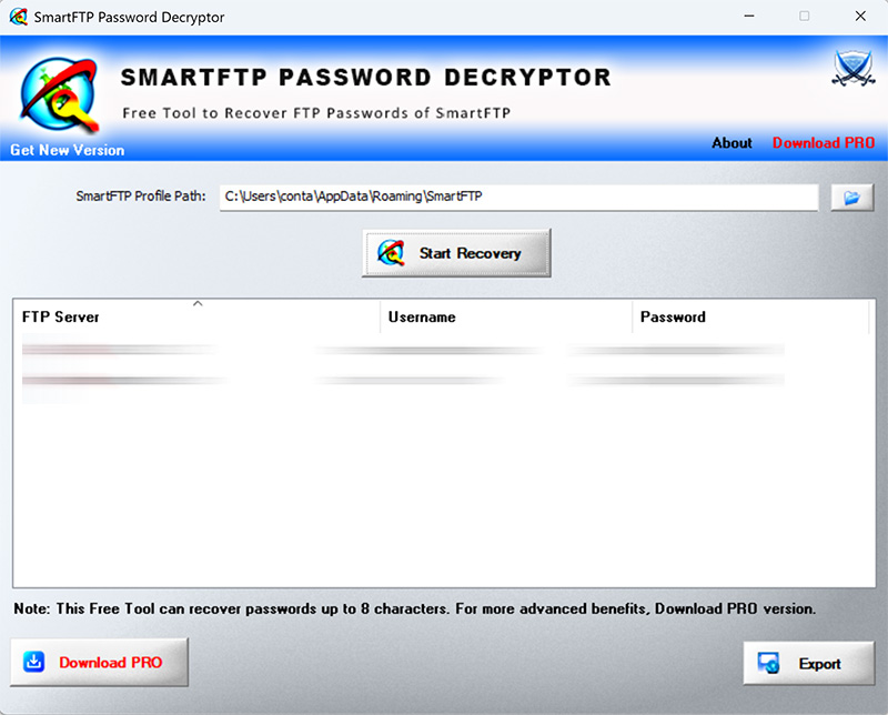 - Восстанавливает сохранённые логины и пароли FTP-клиента SmartFTP.
