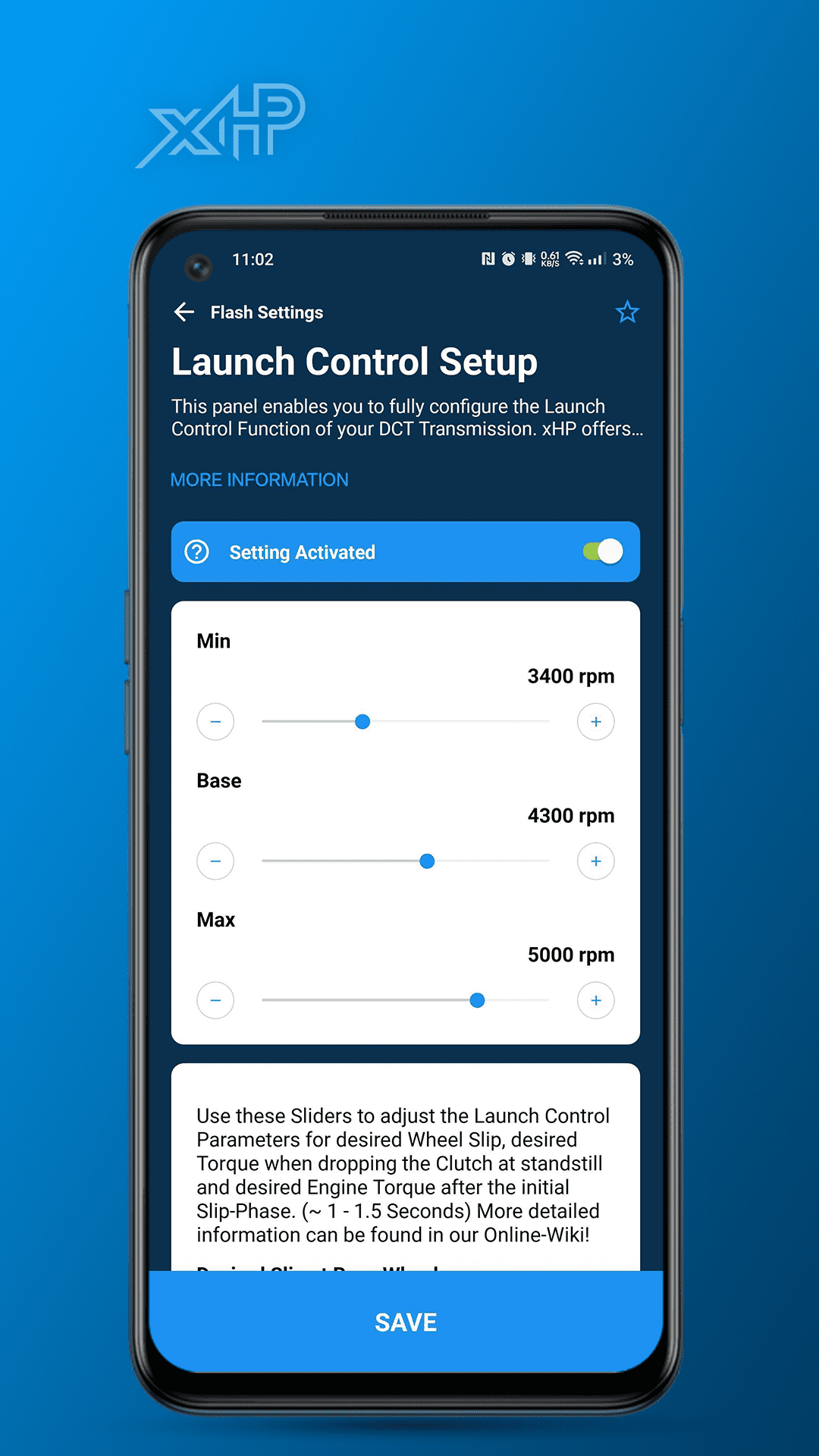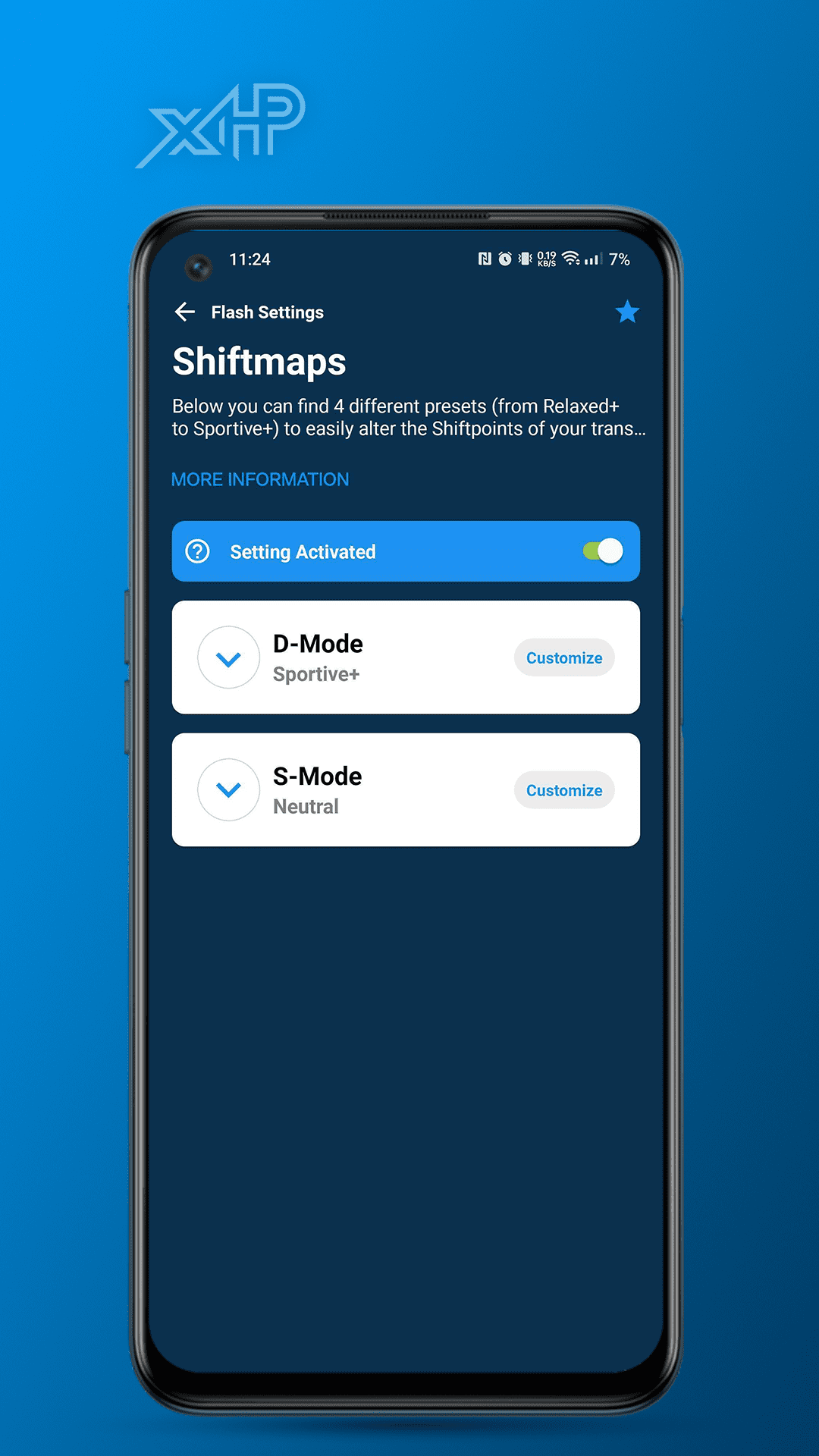 Программа обеспечивает быструю и безопасную регулировку множества параметров: точки переключения передач, скорость реакции трансмиссии и особенности работы в различных режимах движения, без необходимости использовать сложное оборудование. Пользователь может создать собственные настройки или воспользоваться готовыми конфигурациями (OTS-картами), доступными в официальном онлайн-магазине xHP. Для соединения с автомобилем используется Wi-Fi адаптер xHP или совместимые OBD-устройства, что обеспечивает стабильное подключение и высокую точность передачи данных между приложением и системой автомобиля.