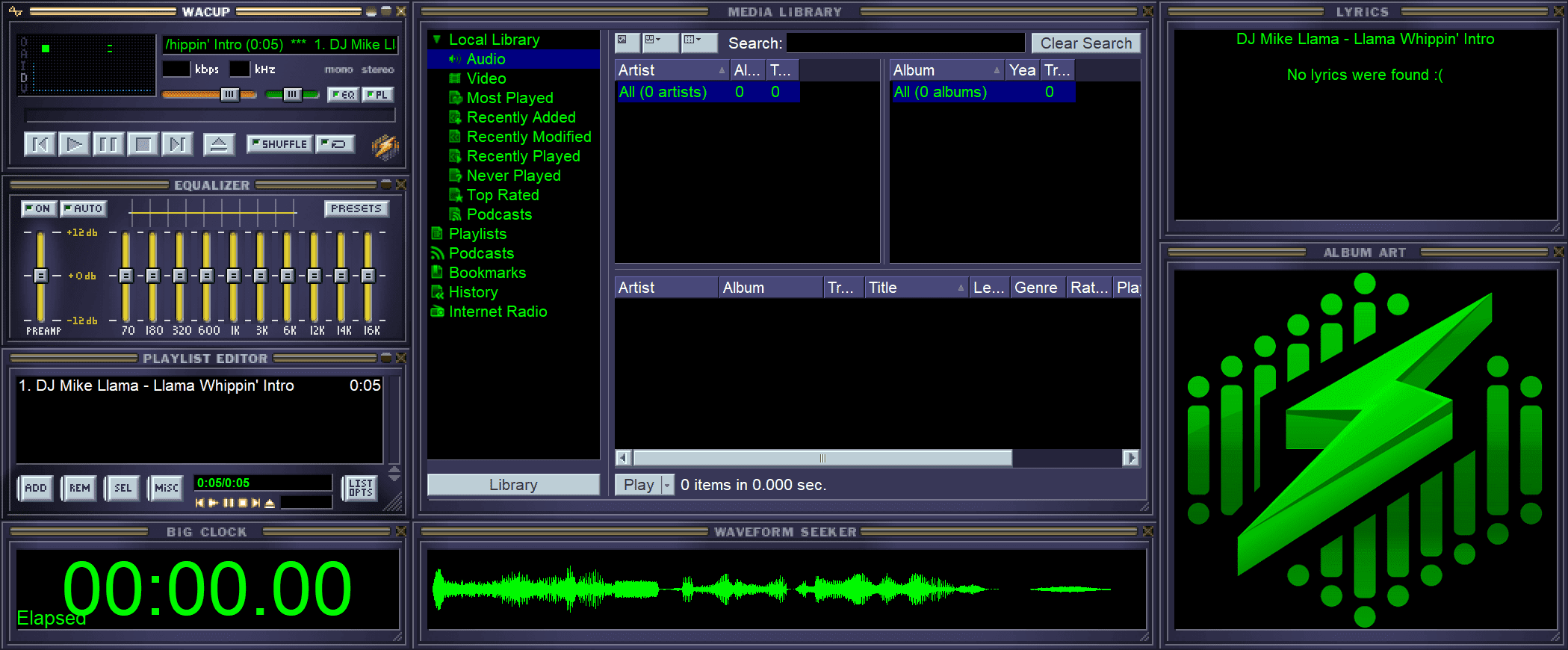 Функция Waveform Seeker, которая визуализирует аудиодорожку в виде волноформы, упрощает навигацию внутри трека. А лучшенный интерфейс управления списками воспроизведения позволяет редактировать содержимое и обновлять медиатеку. Приложение ориентировано на пользователей, которым нравится привычный стиль Winamp, но при этом необходима более актуальная функциональность и поддержка современных форматов.