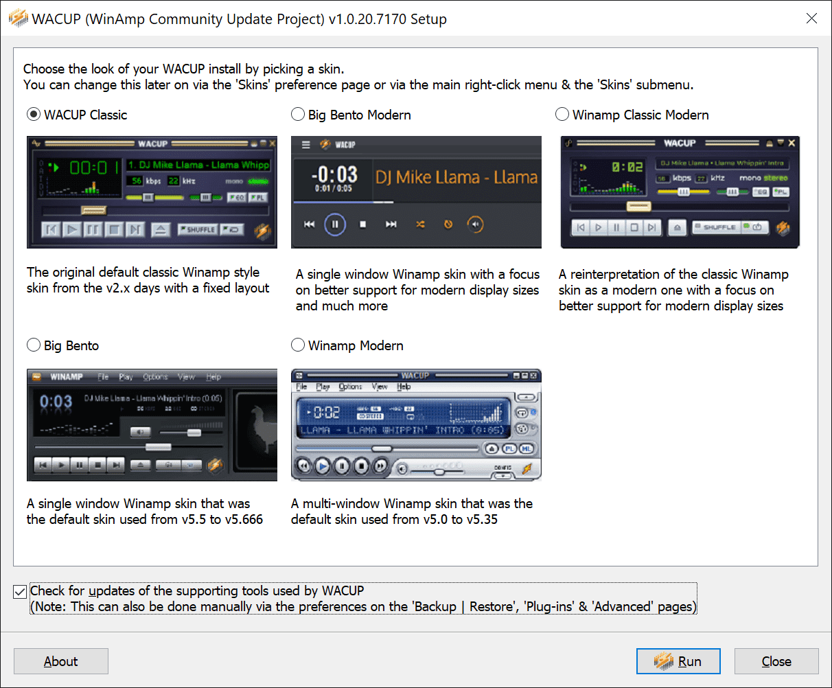 WACUP (WinAmp Community Update Project) — медаиплеер, созданный на базе классического проигрывателя Winamp, который сохраняет его внешний вид и логику использования, но при этом в нем исправлены накопившиеся ошибки, а также используются обновленные плагины и дополнительные инструменты, которые не были реализованы в официальных обновлениях.
