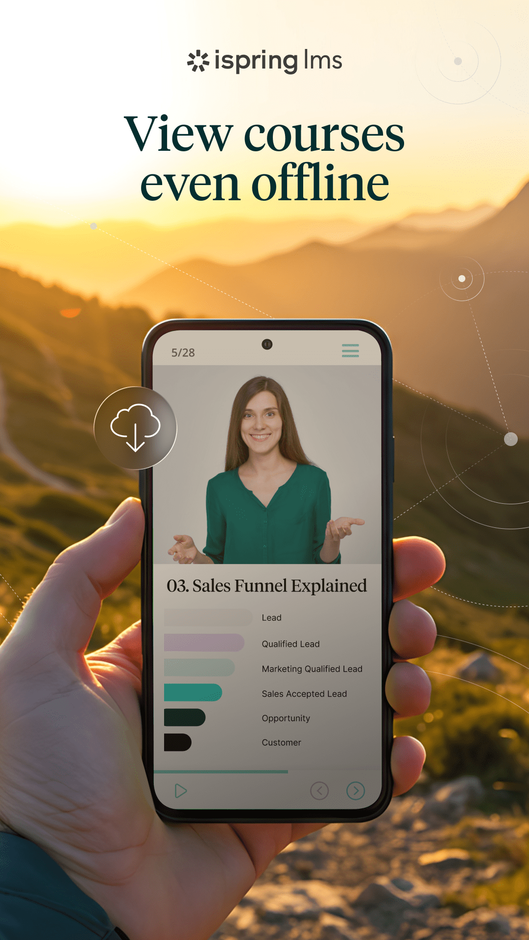 iSpring LMS — приложение для обучения сотрудников и команд, которое предоставляет доступ к материалам корпоративной платформы iSpring LMS. Позволяет проходить курсы, тесты и другие обучающие модули в удобное время и с любого устройства. Интерфейс ориентирован на простоту и понятность, поддерживает множество языков и не требует дополнительной регистрации со стороны пользователя: достаточно данных учетной записи, которую предоставляет администратор системы.