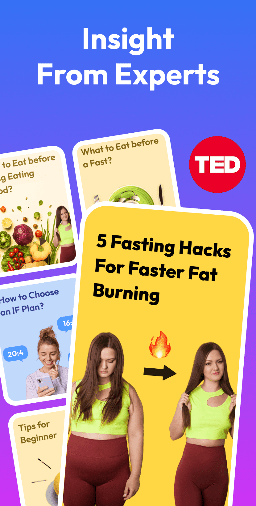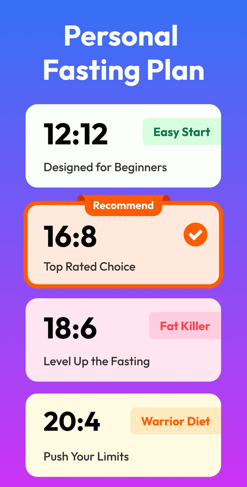 - Поддерживает популярные схемы голодания: 16:8, 14:10, 18:6, 20:4, OMAD и других вариантов.