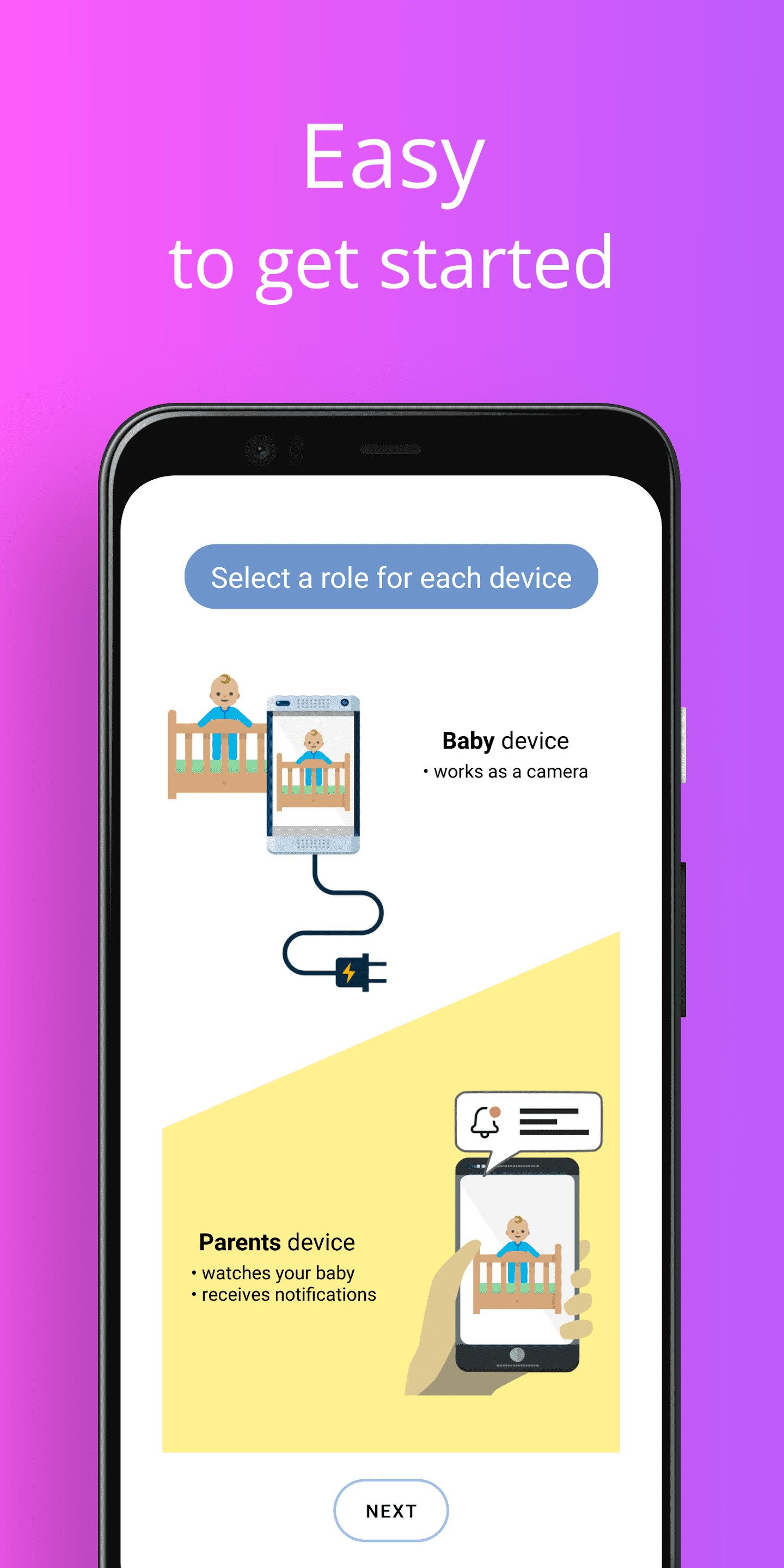 Simple Nanny — приложение для удалённого наблюдения за спящим ребёнком с помощью двух смартфонов. Позволяет создать простую систему контроля, не требующую дополнительного оборудования. Один телефон выступает в роли устройства, размещённого рядом с ребёнком, а второй используется родителем для уведомлений и управления функциями. Такой подход будет удобным в ситуациях, когда необходимо выйти в другую комнату, заняться делами или на короткое время покинуть пространство рядом с ребёнком.