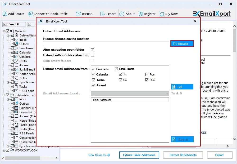 EmailXport Tool — приложение для извлечения и переноса данных электронных почтовых ящиков между различными почтовыми платформами. Инструмент упрощает процесс миграции и помогает структурировать информацию, собранную из файлов разных форматов, что делает его удобным решением для резервного копирования или для перехода на нового провайдера. Программа позволяет гибко управлять содержимым почтового ящика, отбирать необходимые элементы и преобразовывать их в удобный формат для дальнейшей работы.