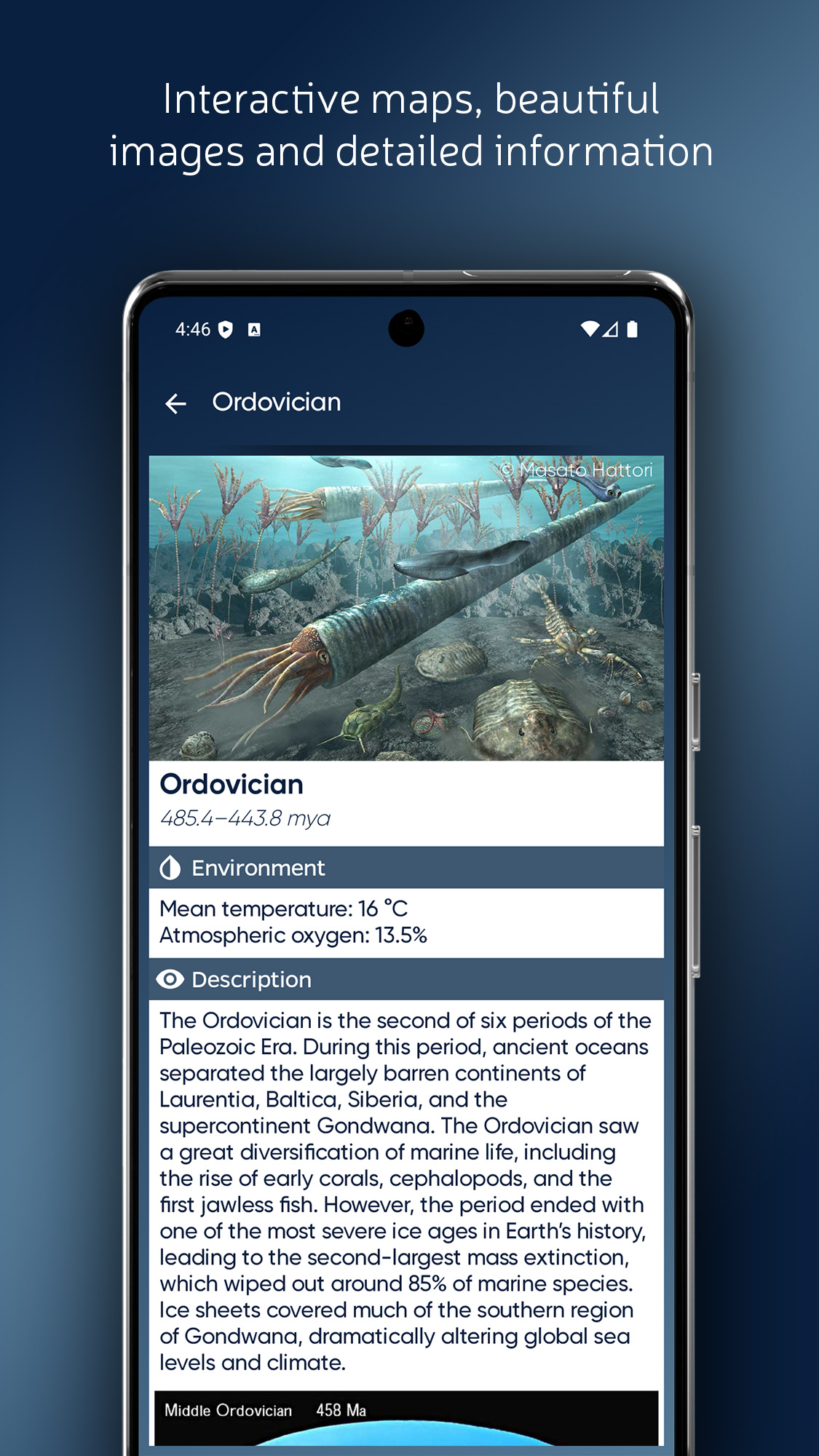 - Содержит интерактивные палеокарты, которые отображают изменения земель и океанов в разные эпохи.