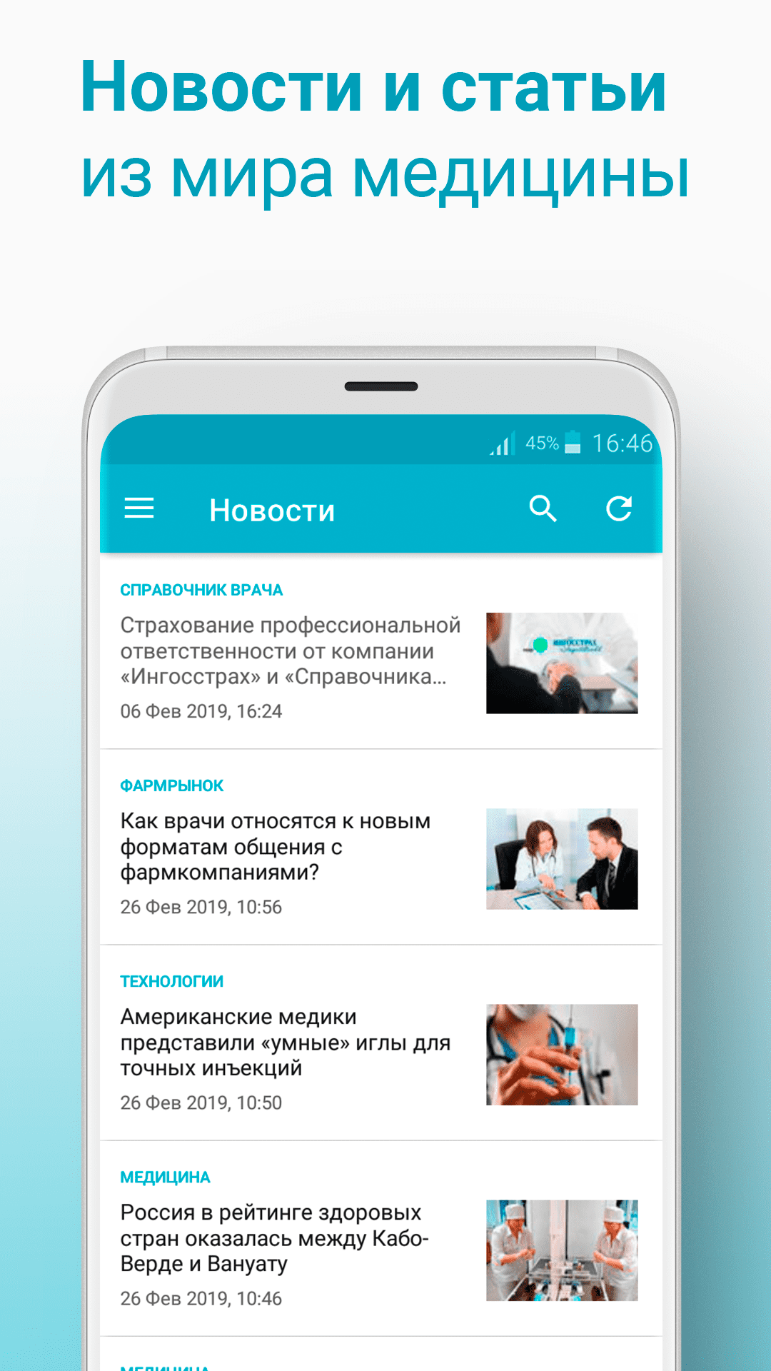 Справочник врача — специализированное медицинское приложение для быстрого доступа к ключевой профессиональной информации, необходимой в повседневной работе врачей разных направлений. Объединяет в одном интерфейсе клинические рекомендации, справочники по лекарственным препаратам, медицинские калькуляторы, классификаторы заболеваний и большую библиотеку научных публикаций. Подходит для врачей стационара и амбулаторной практики, работников неотложной медицины, интернов и студентов, которым требуется компактный и структурированный источник данных.