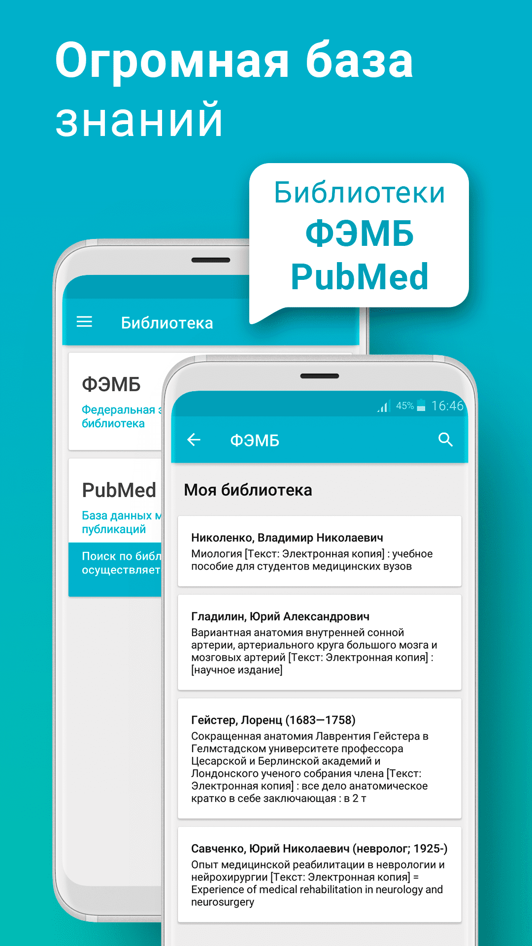 - Открывает доступ к библиотекам ФЕМБ и PubMed с возможностью поиска публикаций.