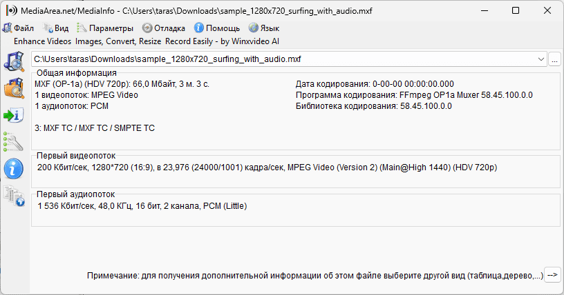 MediaInfo для Windows