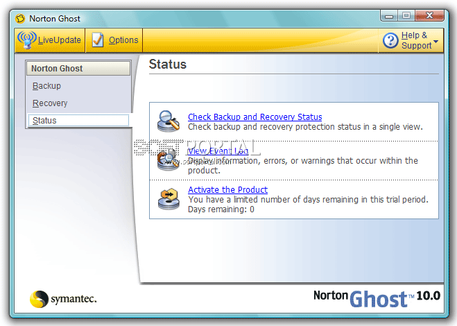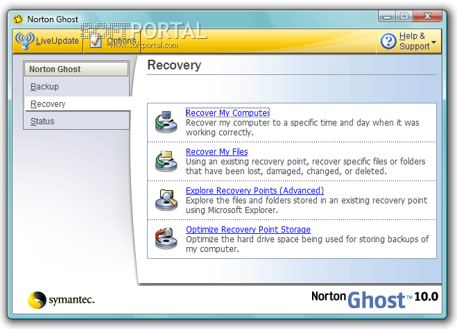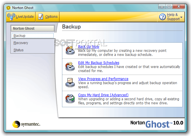 - С помощью функции LiveUpdate обновление программы Norton Ghost происходит через Интернет автоматически.