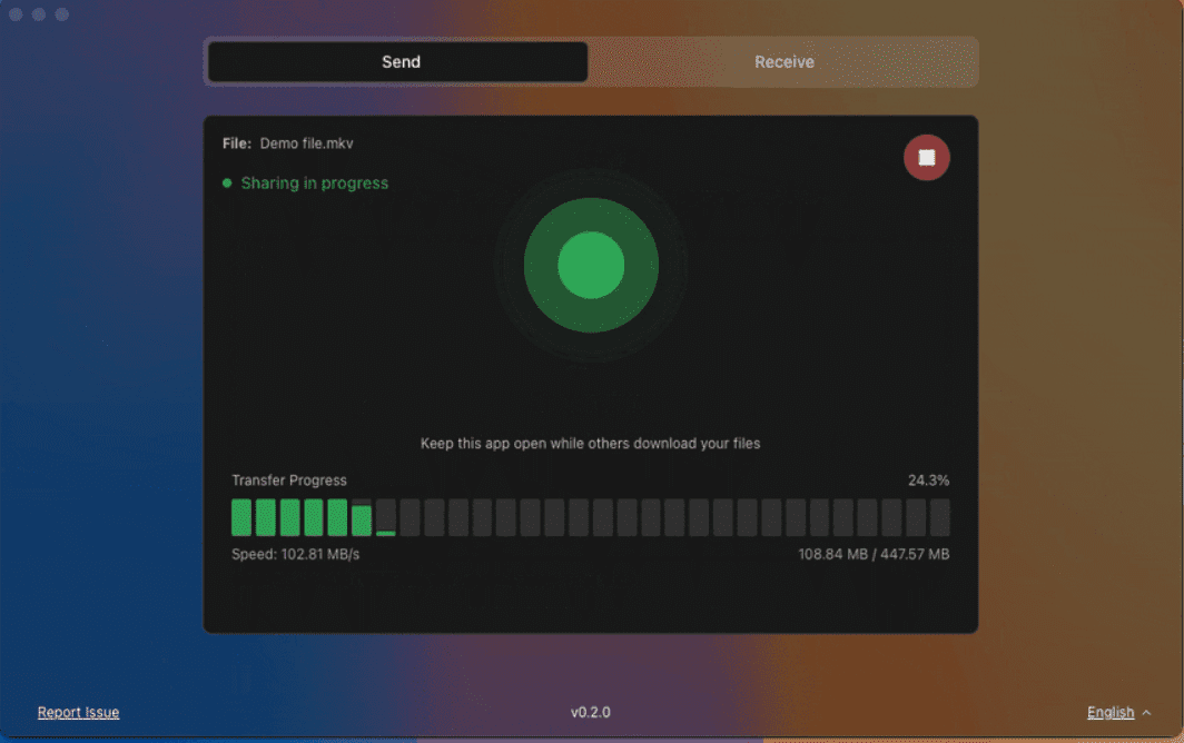 - Обеспечивает прямую передачу файлов и каталогов без облачных сервисов и регистрации.