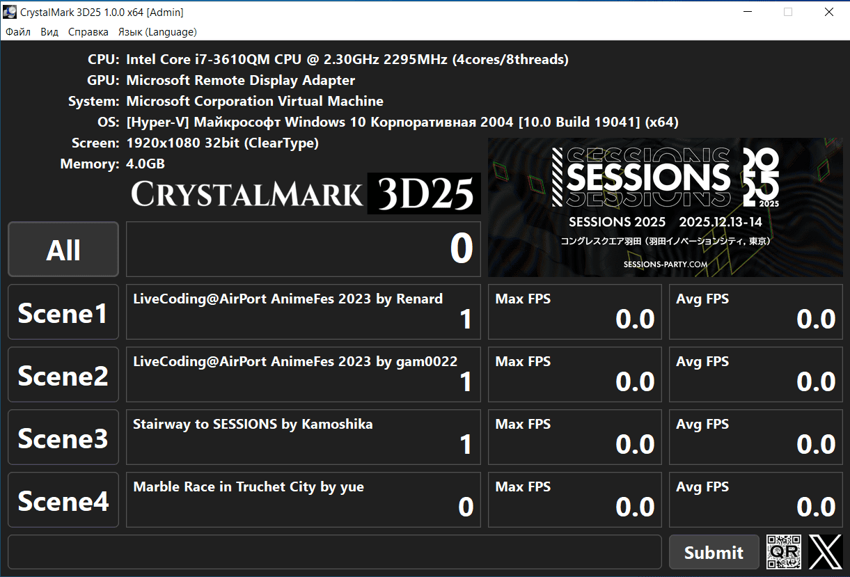 CrystalMark 3D25 — утилита для оценки производительности компьютера при обработке трёхмерной графики с использованием компактных демонстрационных сцен.