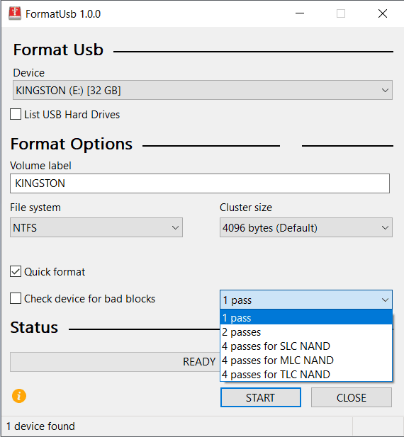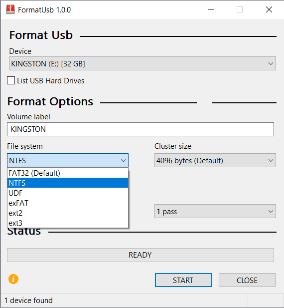 FormatUsb — утилита для работы с USB-накопителями и картами памяти, основанная на известной программе Rufus, и предназначенная для форматирования, восстановления и исправления распространённых проблем, возникающих при использовании съёмных носителей.