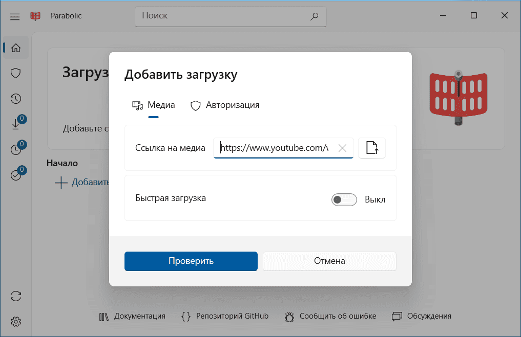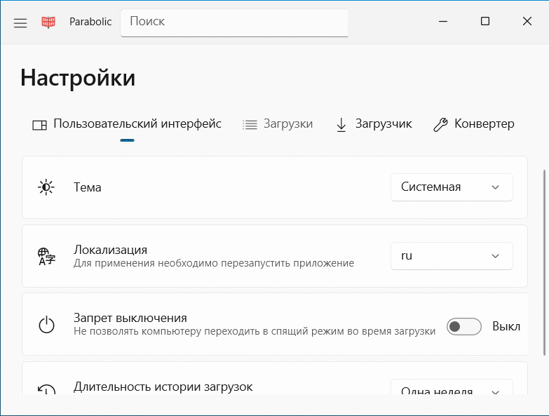 В основе Parabolic лежит популярный загрузчик yt-dlp, известный своей широкой поддержкой сайтов и стабильной работой. Однако в отличие от оригинального инструмента, Parabolic предоставляет полноценный графический интерфейс, что значительно упрощает взаимодействие с программой.