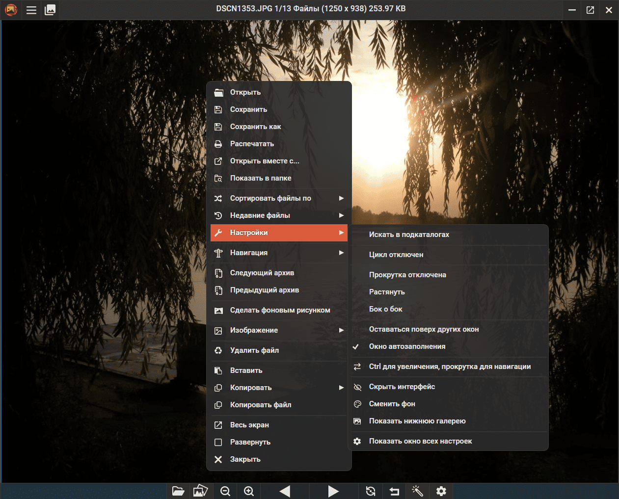- Сортировка изображений по различным параметрам и циклический просмотр.