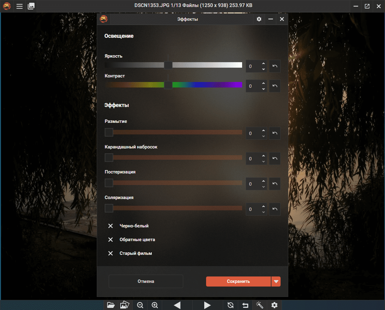 - Применение базовых эффектов и коррекция яркости и контрастности.