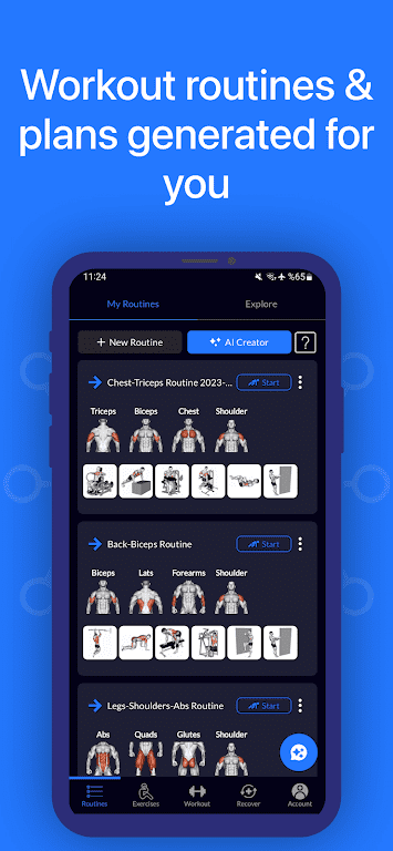 - Предлагает подбор упражнений под конкретные группы мышц.
