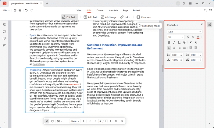 - Редактирование текста, изменение форматирования и выравнивания.