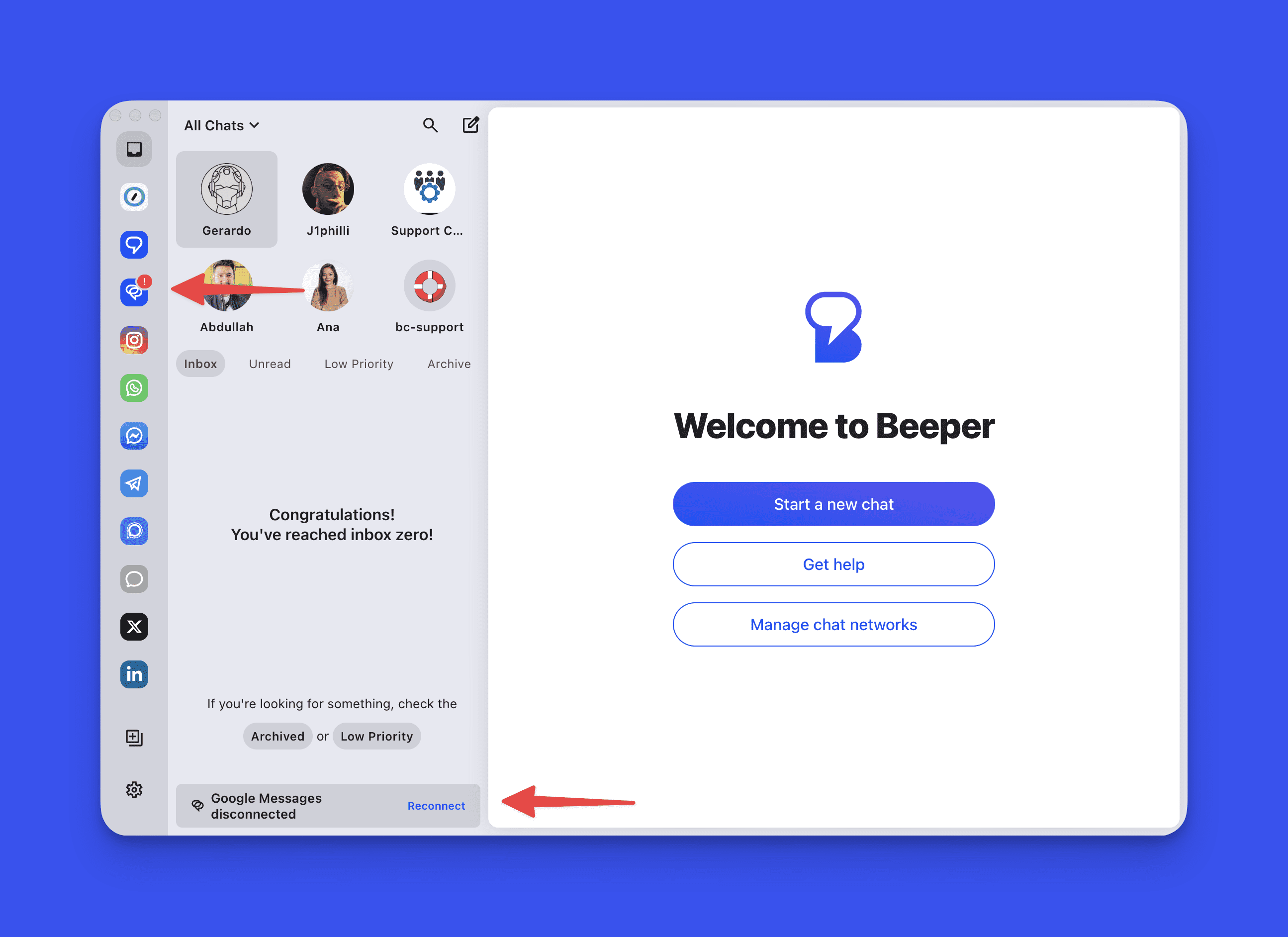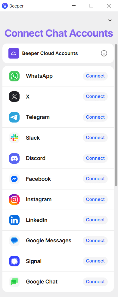 Beeper — приложение для централизованного управления переписками из разных мессенджеров и социальных платформ в одном интерфейсе, объединяет сообщения из популярных платформ и позволяет работать с ними в едином рабочем пространстве. Сервис уделяет особое внимание вопросам конфиденциальности, все переписки защищены с использованием шифрования.